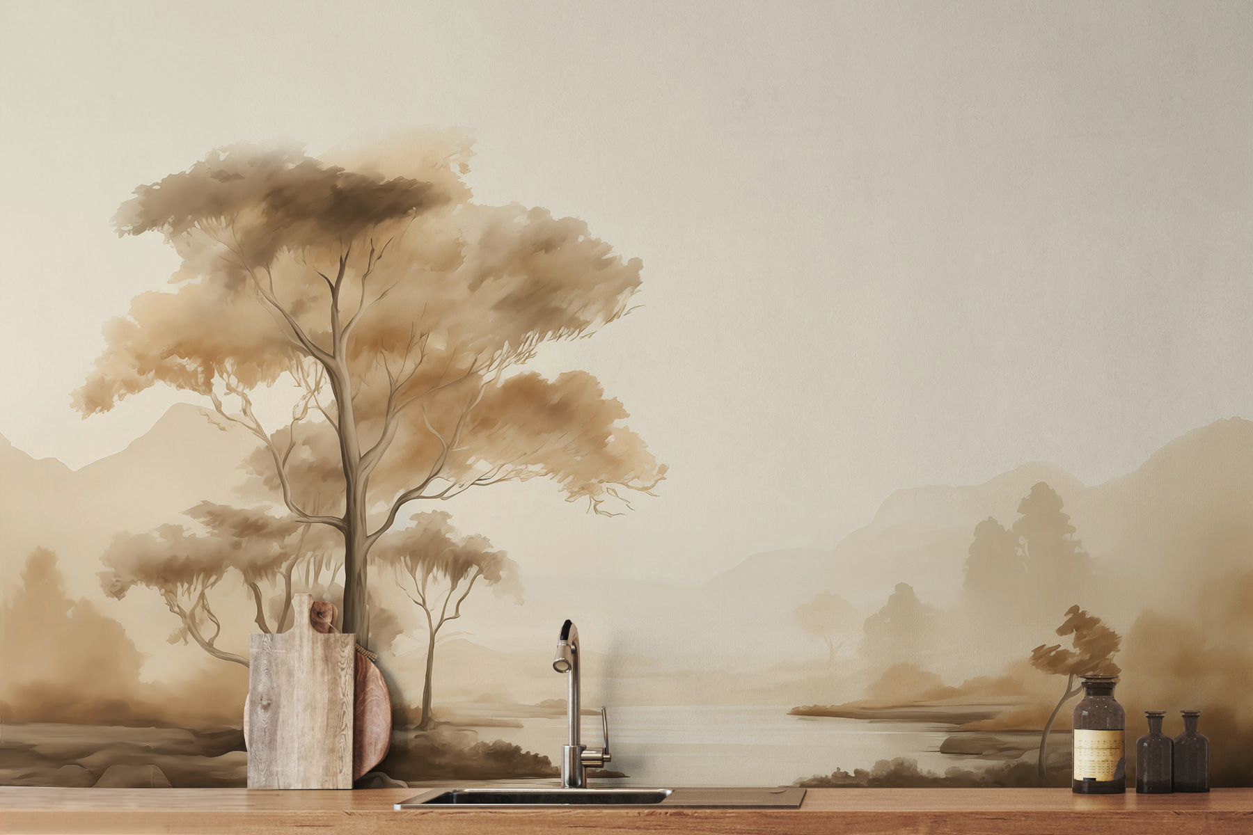 Jemné zemité tóny pôsobia ako hrejivé objatie. Ideálna pre každého, kto potrebuje trochu uniknúť z každodennej rutiny. Na spôsobe, akým stromy splývajú s oblohou, je niečo nadčasové – takmer ako v starej rozprávke, ktorú ste počuli od starých rodičov. Verte mi, je to rovnako upokojujúce, ako to znie. Či už ste milovníci prírody, snílkovia, alebo hľadáte kúsok pokoja, táto nástenná maľba vám kryje chrbát. Tak čo keby ste si do interiéru priniesli kúsok pokojnej divočiny? Je to ako okamžitý útek… bez balenia tašky!