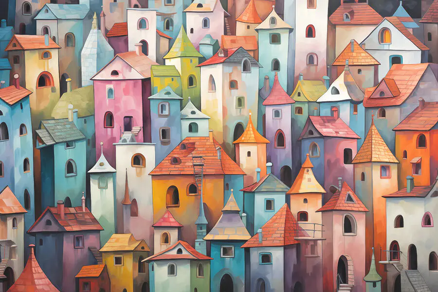 Pomocou tejto nástennej maľby s farebnými budovami premeníte každú stenu na živú pouličnú scénu. Predstavte si, že vstúpite do rozmarnej dediny, kde každá stavba rozpráva svoj vlastný príbeh a živé odtiene tancujú vo svetle. Predstavte si víkendové stretnutie s priateľmi, pri ktorom sa ozýva smiech, keď obdivujú hravé čaro tohto umeleckého diela. Je to ako priniesť výbuch radosti priamo do vašej obývačky – alebo kuchyne, alebo kamkoľvek máte chuť! Je ideálny na oživenie nudného priestoru, dodáva mu nádych kúzla, vďaka ktorému sa všetci budú usmievať. Kto by sa necítil inšpirovaný takouto farebnou spŕškou?