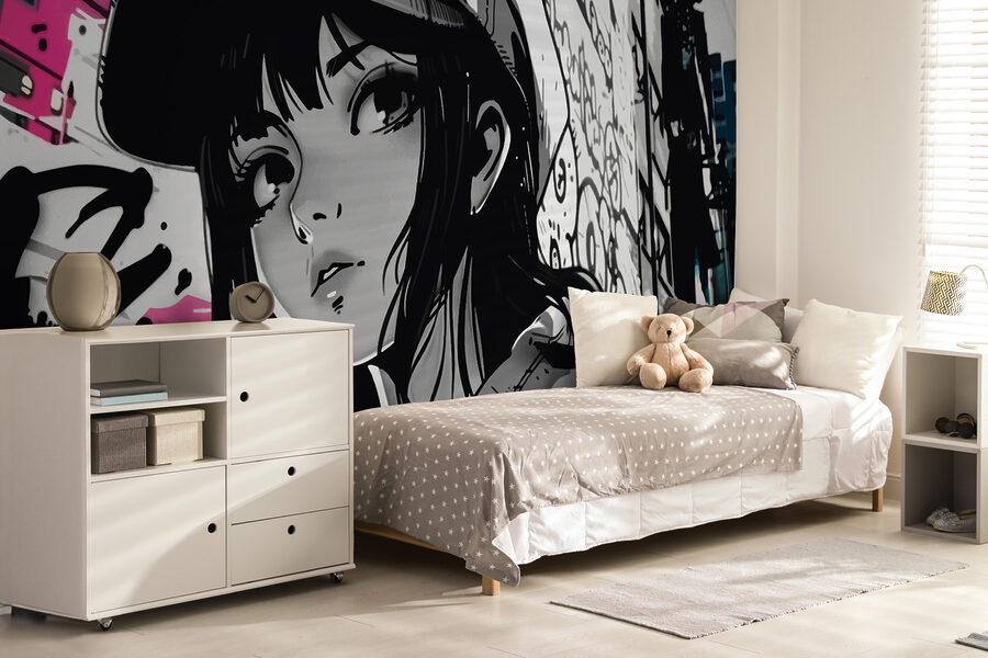 Vneste do každej miestnosti štipku umeleckého vkusu s touto podmanivou nástennou maľbou, na ktorej je zobrazená elegantná žena v klobúku. Predstavte si, že vstúpite do útulného zákutia, kde táto nástenná maľba vyvoláva rozhovory a podnecuje kreativitu. Kontrastné farby a odvážne línie jej dodávajú moderný nádych, takže je ideálna do každého priestoru pre mladých ľudí. Je to ako mať galériu pouličného umenia priamo doma! Či už popíjate kávu, alebo plánujete študijné sedenie, táto nástenná maľba dodáva atmosféru, ktorá je inšpiratívna a zároveň ľahko cool. Priatelia sa pred ňou možno dokonca zastavia, aby si urobili jednu alebo dve selfie!