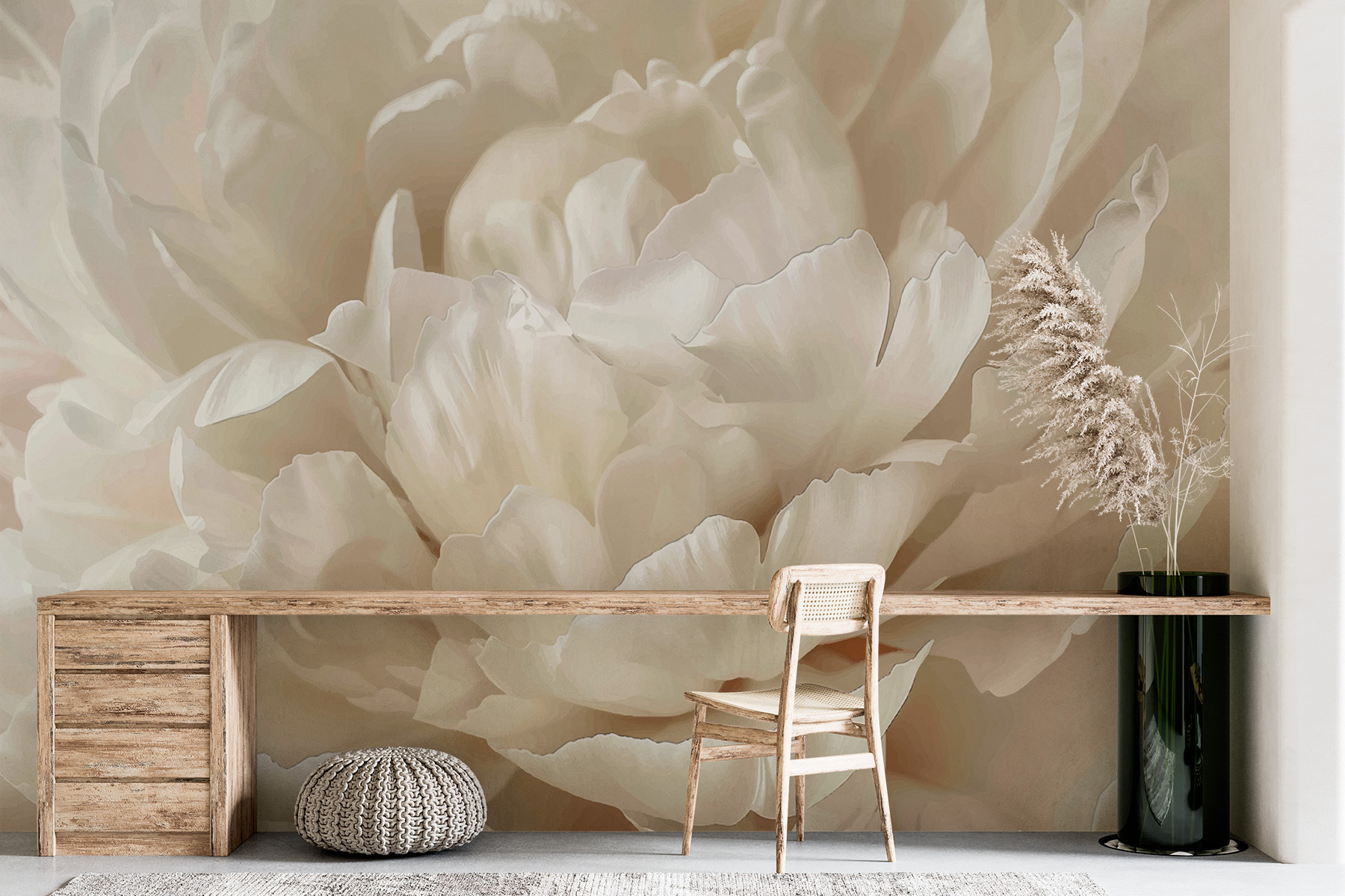 Premeňte nudnú stenu na pokojnú svätyňu pomocou nástennej maľby “Elegantný kvet v jemnom ohnisku”. Predstavte si, že vstúpite do útulného zákutia, kde sa jemné okvetné lístky pivoniek akoby vznášali ako jemný šepot v nekonečnej záhrade. Jemné odtiene vytvárajú upokojujúcu atmosféru, ktorá je ideálna na popíjanie čaju alebo zahĺbenie sa do dobrej knihy. Priatelia budú obdivovať, ako nástenná maľba prináša nádych prírody do interiéru – nie je potrebný zelený palec. Je to ako mať kúsok kvetinového raja bez zalievania! Stačí sa pohodlne usadiť, relaxovať a vychutnávať si krásu kvitnúcu priamo na vašej stene.