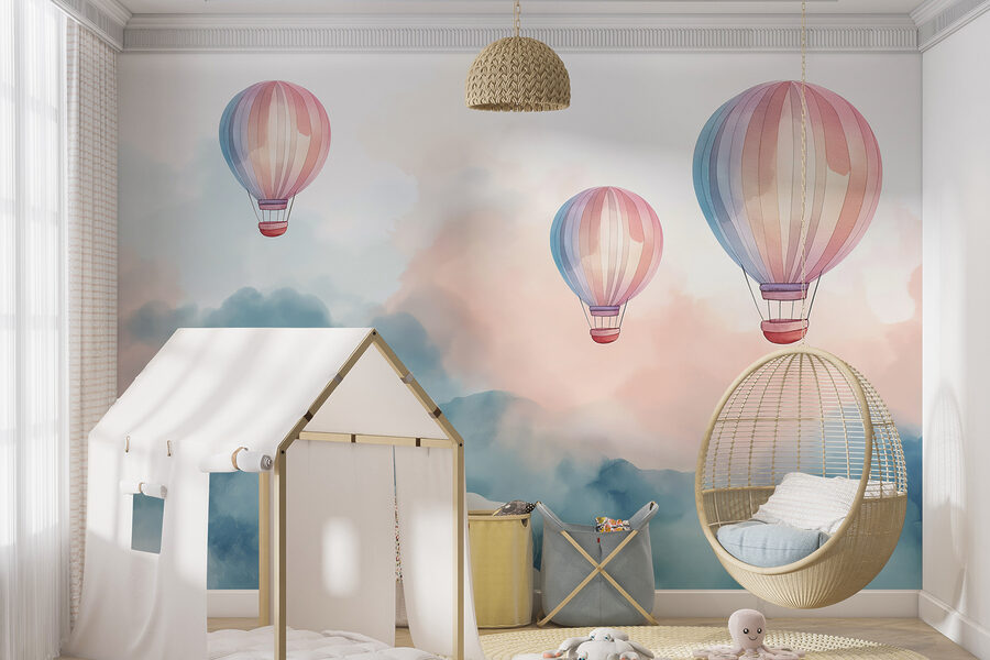 Hľadáte niečo netradičné, čím by ste oživili svoj obytný priestor? Pozrite si “Nástenné maľby w01011”! Predstavte si to: jemné obláčiky nadýchanej modrej a ružovej farby, ktoré sa vznášajú okolo, s rozmarnými teplovzdušnými balónmi. Je to ako okamžitý zlepšovák nálady! Ideálne pre snívajúcich ľudí alebo pre každého, kto chce mať kúsok pokoja priamo vo svojej izbe.