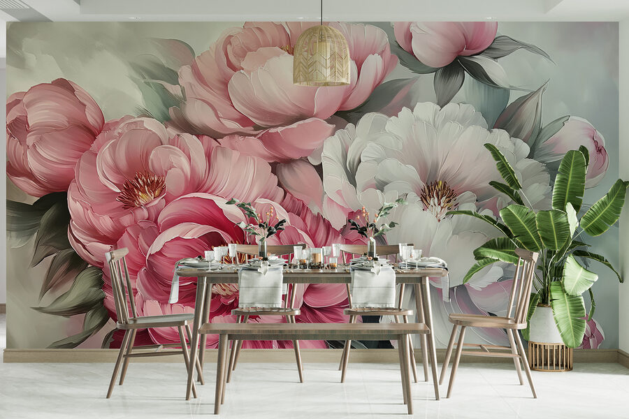 Premeňte akúkoľvek miestnosť na rozkvitnutý raj s touto žiarivou nástennou maľbou s nádhernou skupinou kvetov uložených medzi sviežimi listami. Predstavte si, že vstúpite do priestoru, ktorý je ako živý, kde každý pohľad odhaľuje jemné okvetné lístky a jemné odtiene, ktoré rozjasnia aj ten najnudnejší deň. Je to ako mať vlastnú záhradu, bez otravných včiel! Či už v útulnom čitateľskom kútiku, alebo v elegantnej jedálni, táto nástenná maľba navodzuje pocit pokoja a krásy. Tak smelo do toho, nechajte svoj domov zaplaviť kvetinovými vibráciami. Je to rovnako osviežujúce ako jarné ráno – bez alergií.