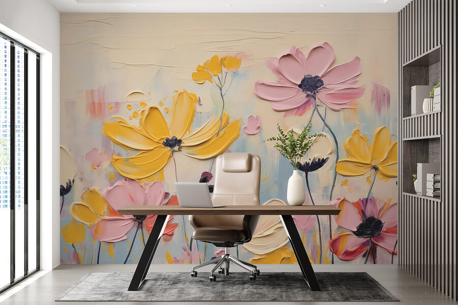 Predstavte si, že vstúpite do miestnosti hýriacej farbami a radosťou – táto nástenná maľba prináša práve to! Žiarivé kvety tancujú na jemnom krémovom pozadí, vďaka čomu sa budete cítiť ako na jar po celý rok. Predstavte si útulný kútik, kde môžete popíjať kávu a len tak sa kochať veselými vibráciami. Či už ide o obývaciu izbu alebo hravú detskú izbu, táto nástenná maľba premení priestor, takmer akoby ste doň pozvali záhradu. Nie je to len dekorácia, je to každodenná dávka šťastia. Kto by sa nechcel každé ráno prebúdzať na túto kvetinovú párty?