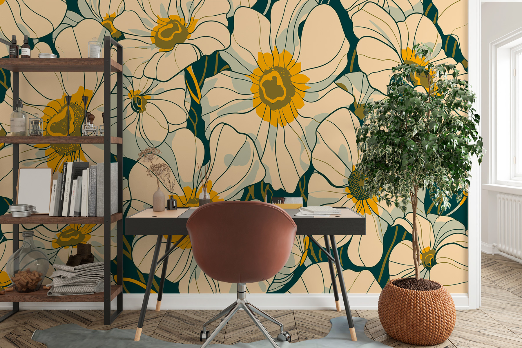Premeňte akúkoľvek miestnosť na rozkvitnutú oázu s týmito nádhernými nástennými maľbami, na ktorých sa lesknú kvety so slnečnými stredmi. Je to ako pozvať záhradu do interiéru bez starostí so zalievaním alebo otravnými včelami! Predstavte si, že sa prebúdzate obklopení touto žiarivou scenériou, kde každý okvetný lístok akoby šepkal malé tajomstvo o kráse prírody. Perfektne sa hodí do akéhokoľvek priestoru, či už je to útulná obývacia izba alebo veselá detská izba. Priatelia budú omdlievať nad veselými vibráciami, ktoré prináša, a kto vie, možno to vyvolá rozhovory o založení vlastnej interiérovej džungle. Prečo sa do toho nepustiť a nerozžiariť tieto steny?