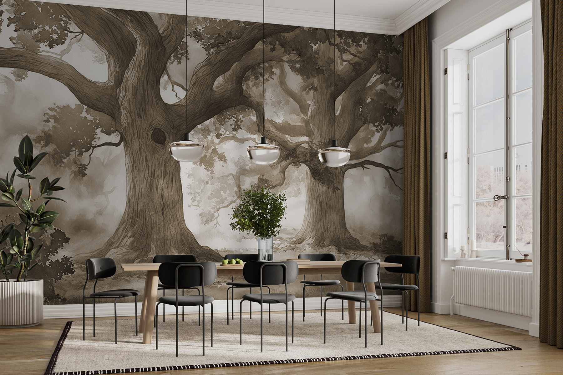 Vstúpte do rozmarného sveta s touto nástennou maľbou s nádhernou skupinou stromov s útulnou dierou v jednom kmeni – ideálnou na snívanie o odpočinku lesných zvieratiek. Tento dizajn prináša pokojné kúzlo prírody priamo do vášho domova a necháva steny šepkať príbehy o starobylých lesoch a tichých dobrodružstvách. Predstavte si, ako sa v daždivý deň schúlite do klbka s teplým nápojom v ruke, zatiaľ čo stromy stoja na stráži a vytvárajú upokojujúcu kulisu. Je to ako mať pokojný kúsok prírody, bez bahna. Ideálny do každej miestnosti, ktorá potrebuje nádych pokoja.