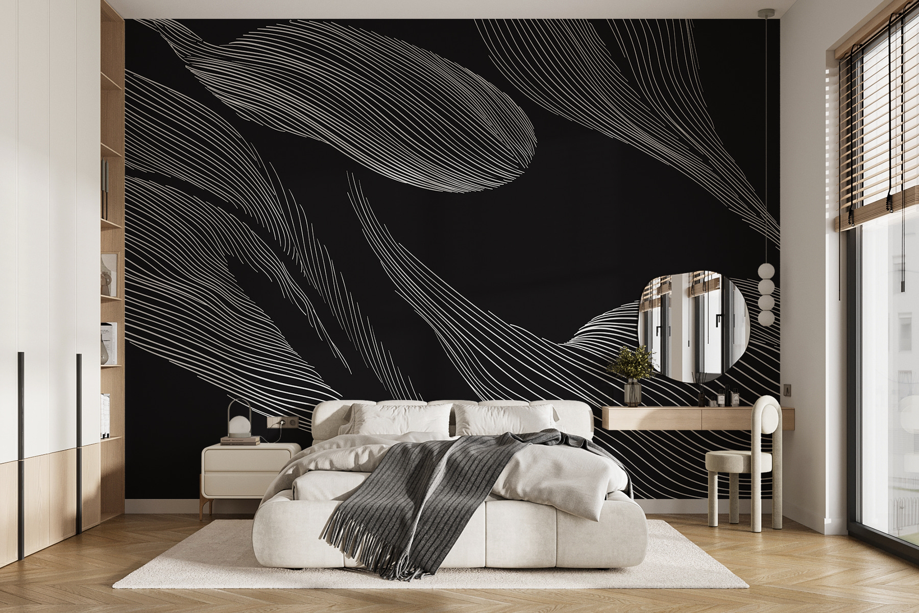 Premeňte svoj priestor pomocou tejto úžasnej čiernobielej fototapety s listami, ktorá tancuje po stene. Je to ako preniesť prírodu do interiéru, bez chrobákov – bonusové body! Plynúce línie ponúkajú pocit pohybu a pripomínajú jemný vánok šuchotajúci v listoch. Ideálny do útulného čitateľského kútika alebo modernej obývačky, určite vyvolá rozhovory a možno aj trochu snívania. Predstavte si, ako sa krútite so šálkou čaju, obklopení upokojujúcimi vibráciami tohto umeleckého diela. Kto by povedal, že nástenná maľba dokáže zmeniť celú stenu na náladu?