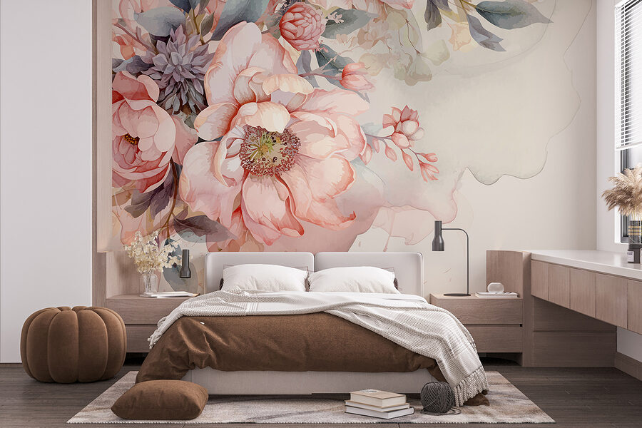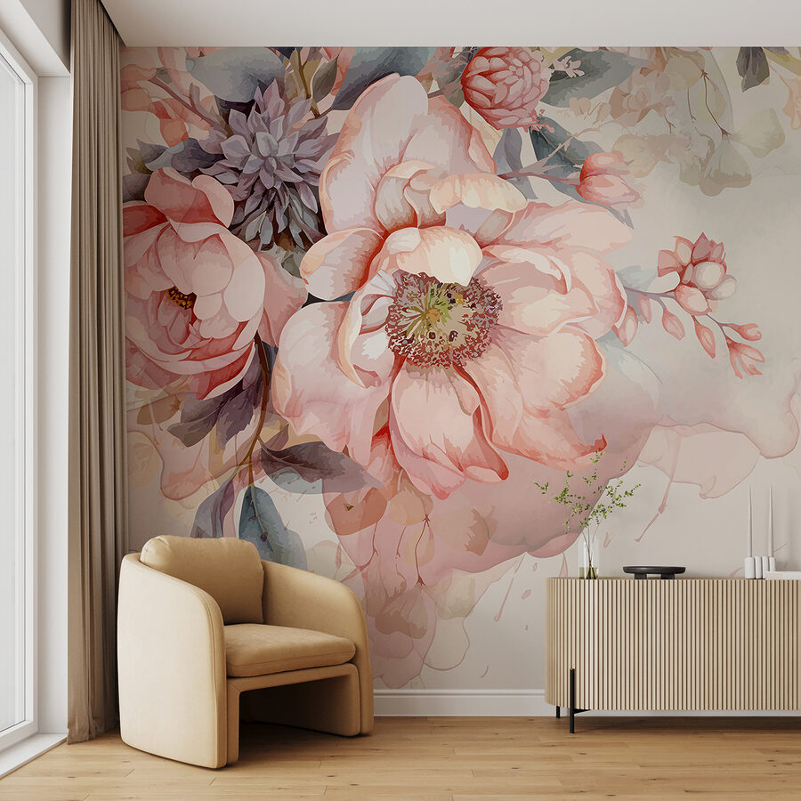Predstavte si, že by ste svoj priestor premenili pomocou tejto úžasnej nástennej maľby “Akvarelové kvety v jemných pastelových farbách”. Je to ako preniesť pokojnú záhradu priamo do vašej izby. Jemné odtiene ružovej, krémovej a zelenej navodzujú upokojujúcu, takmer snovú atmosféru. Ideálny pre nadšencov kvetín alebo pre každého, kto chce pridať dotyk prírody bez toho, aby bol príliš odvážny.