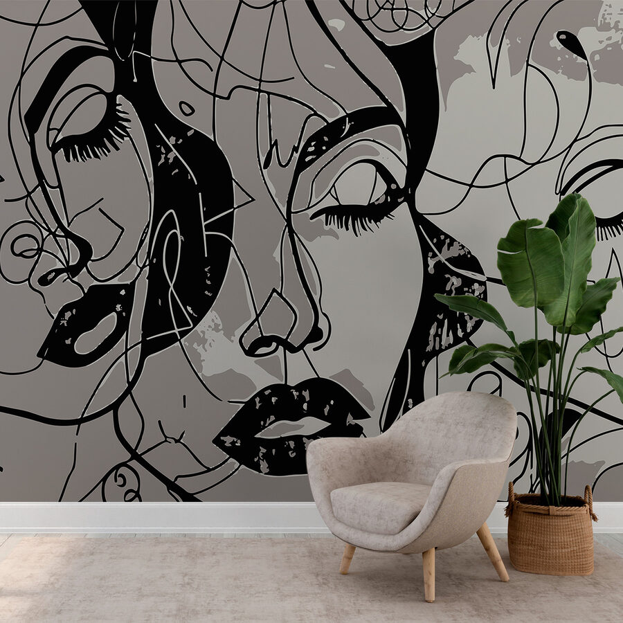 Predstavte si kúsok modernej elegancie priamo na vašej stene – “Nástenné maľby w01297” sú presne také. Tento kúsok, ktorý sa nachádza v kategórii Obľúbené fototapety na stenu a Fototapety mladých žien, je ako vstup do snového, abstraktného sveta. Výrazné línie, mäkké krivky a tie pokojné tváre… akoby šepkali tajomstvá, ktoré môžete počuť len vy.