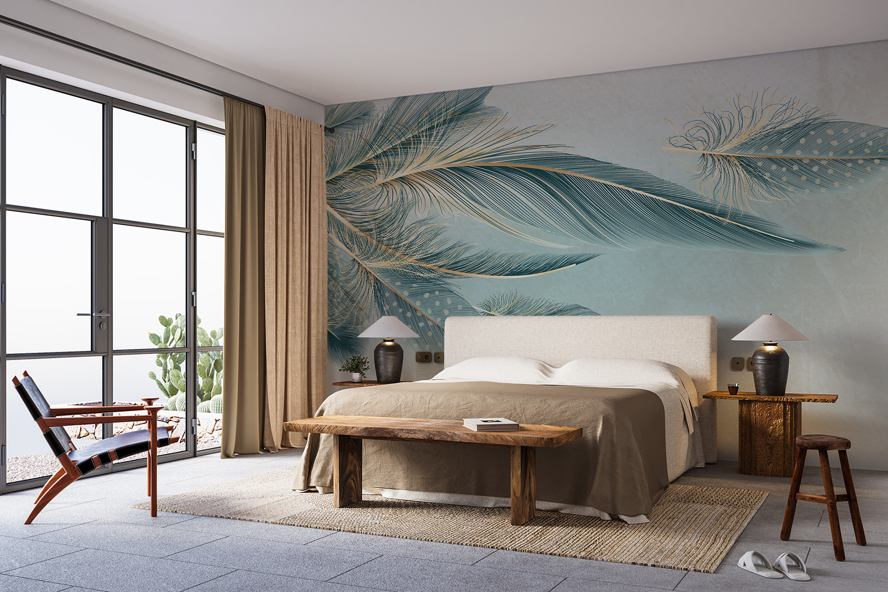 Premeňte svoj priestor pomocou tejto úžasnej nástennej maľby s perím na jemnom bielom pozadí. Predstavte si, že vojdete do miestnosti, ktorá je ľahká a vzdušná; tieto nádherne ilustrované pierka sa ladne vznášajú vo vzduchu a vyvolávajú pocit pokoja a slobody. Vďaka jemným detailom je každé pierko takmer hmatateľné. Je to ako pozvanie jemného vánku do interiéru! Táto nástenná maľba je ideálna do útulného čitateľského kútika alebo minimalistickej spálne, dokáže prepožičať vašim stenám punc bez toho, aby kričala o pozornosť. Vytvára pokojnú atmosféru, v ktorej si človek môže oddýchnuť, popíjať čaj alebo sa stratiť v dobrej knihe. Ak si potrpíte na jedinečné dekorácie, ktoré vám dodajú charakter, tento obraz nie je žiadnou voľbou. Hostia budú zvedaví; kde ste našli takýto skvost?