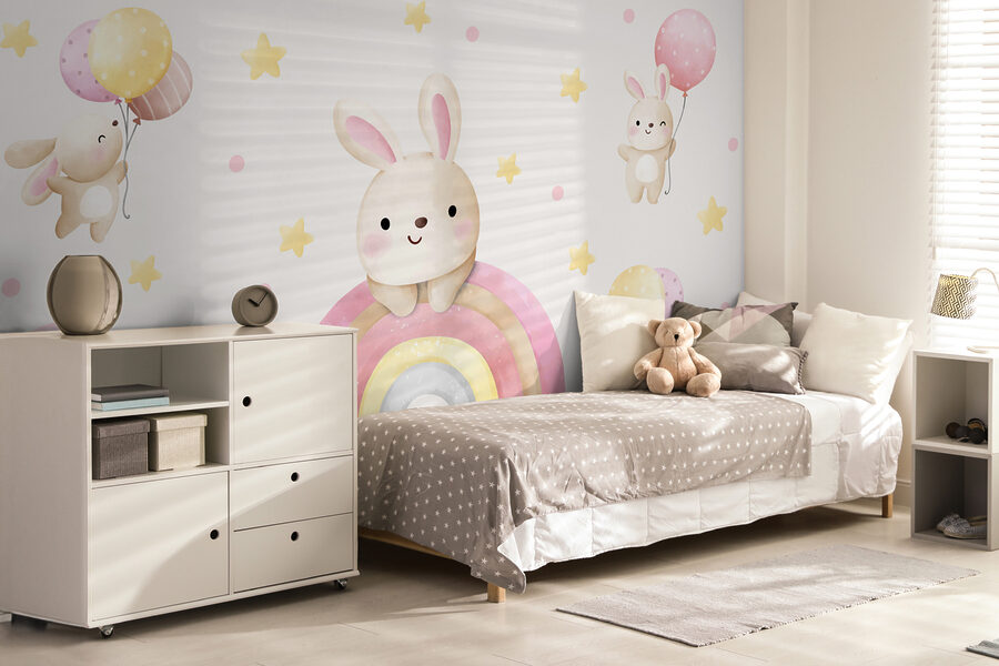 Zoznámte sa s “Nástennými maľbami w01332v1” – malým dotykom rozmarnej radosti, ktorý budete zbožňovať! Táto nástenná maľba má všetky predpoklady pre očarujúci priestor: roztomilé zajačiky, jemné pastelové farby a očarujúcu dúhu. Predstavte si detskú izbu, ako sa vyhrieva v jej sladkej, hrejivej žiari… Alebo aj útulný čitateľský kútik, ktorý sa okamžite stane šťastnejším! Hraví zajačikovia držiaci balóny, obklopení drobnými hviezdičkami, robia z tejto nástennej maľby absolútny sen. Je to posyp kúziel – ako objatie pre vaše steny! Ideálna pre každého, kto miluje štipku rozmarnosti a veľa úsmevov.