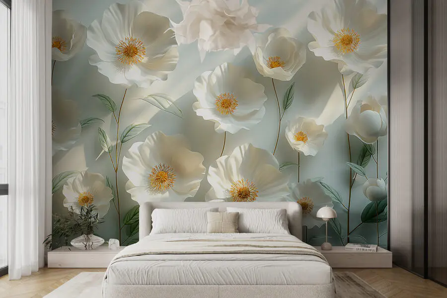 Premeňte akúkoľvek stenu na záhradu s touto úžasnou fototapetou s krásnou skupinou bielych kvetov, ktoré radostne klíčia uprostred zelených listov. Predstavte si, že sa každý deň zobúdzate a máte pocit, že sa prechádzate po lúke zaliatej slnkom. Tieto kvety dodávajú sviežu, upokojujúcu atmosféru, ktorá je ideálna pre útulné rána alebo chladné večery. Či už v obývačke, spálni, alebo dokonca v kreatívnom priestore, každý si pri nich povie: “Páni, pozrite sa na ne!” Navyše, kto by nemiloval kvety, ktoré nepotrebujú zalievať? Vaša stena sa vám poďakuje, zatiaľ čo vy sa budete kochať ich krásou!