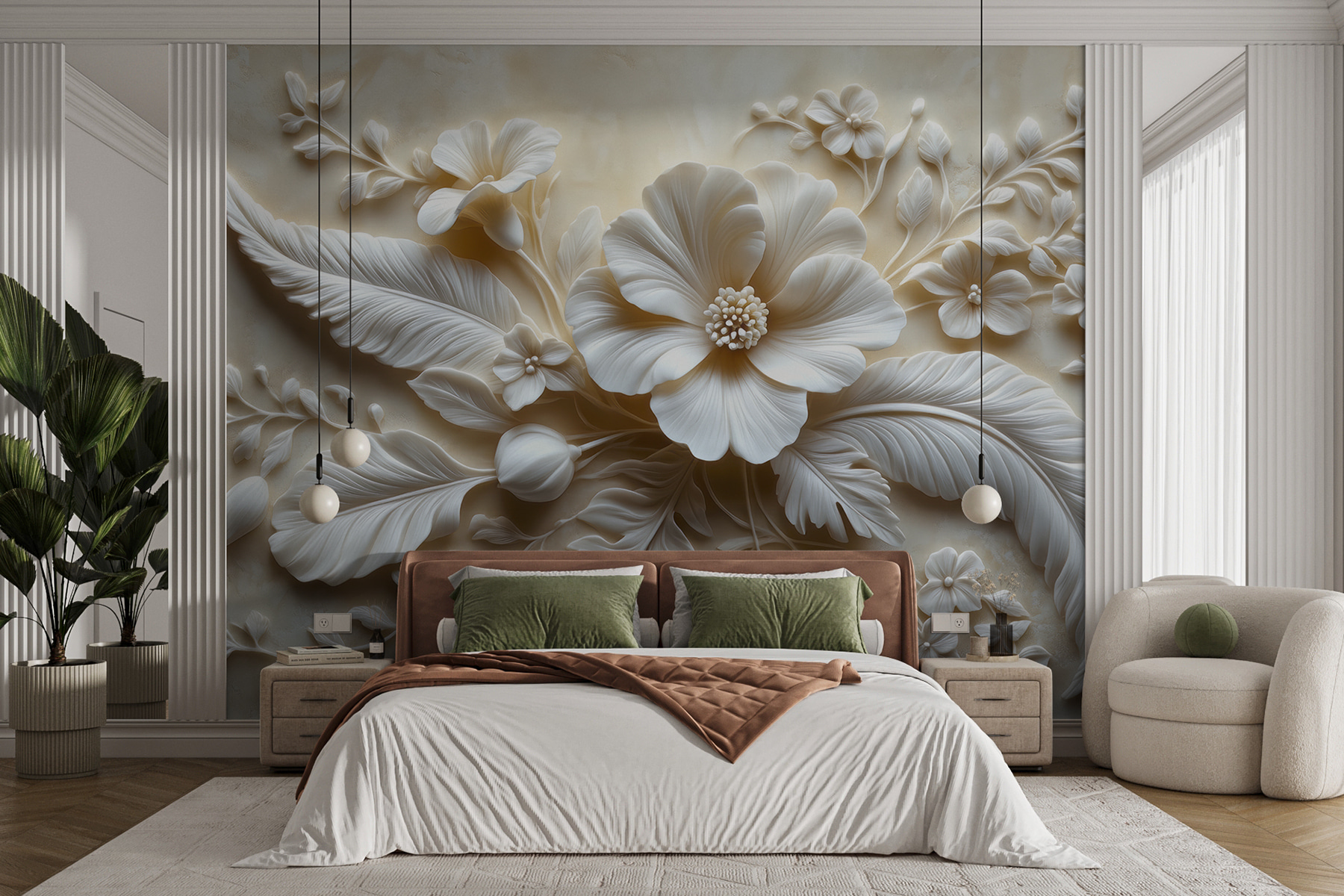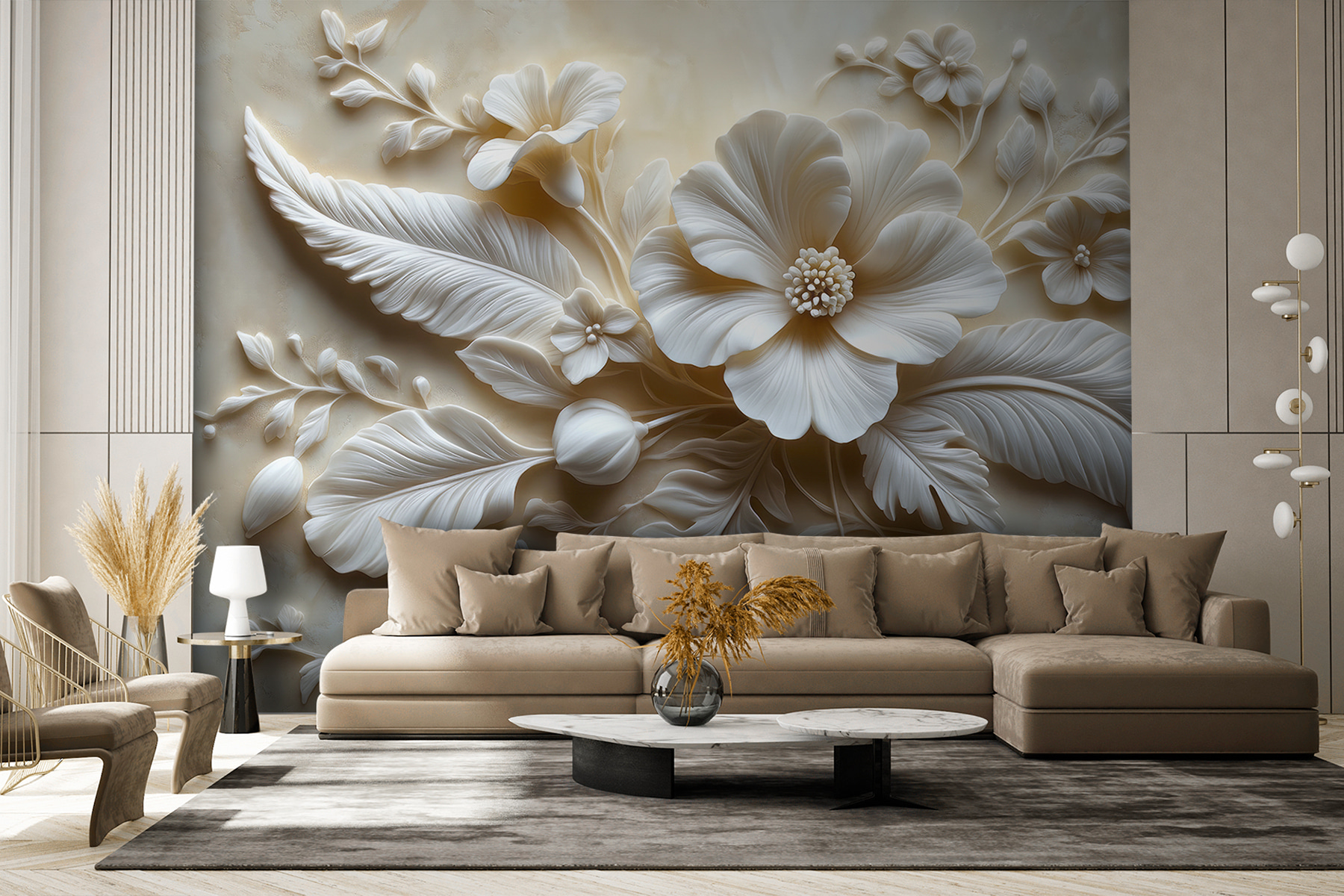 Premeňte akúkoľvek miestnosť na pokojné útočisko pomocou tejto úžasnej nástennej maľby s jemnými bielymi kvetmi a sviežimi listami. Predstavte si, že vojdete do svojho priestoru a okamžite sa budete cítiť povznesene vďaka jemnej elegancii, ktorá vás obklopuje. Je to ako preniesť záhradu do interiéru – bez zalievania! Zložitý dizajn priťahuje pozornosť a vyvoláva konverzáciu, takže je ideálny do útulného zákutia alebo živej obývačky. Priatelia sa pravdepodobne zastavia a budú sa čudovať, kde ste našli takýto skvost. Prijmite upokojujúcu prítomnosť prírody priamo u vás doma. Kto by povedal, že steny môžu pôsobiť tak hrejivo?