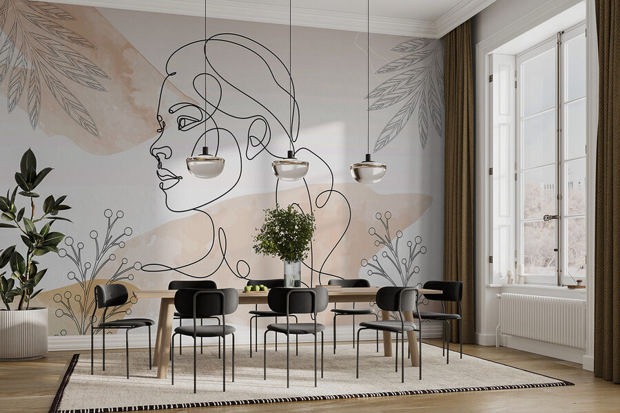 Predstavte si, že vojdete do miestnosti a privíta vás očarujúca prítomnosť ženskej tváre, umne stvárnenej na úžasnej nástennej maľbe. Tento kúsok, v ktorom sa spájajú jednoduché línie s jemnými, zemitými farbami, dodá každému priestoru štipku osobnosti. Šepká príbehy, pozýva ku konverzácii a snívaniu. Predstavte si priateľov, ako sa stretávajú, oči upierajú na nástennú maľbu a každý interpretuje krásu vlastnou optikou. Nie je to len dekor, je to atmosféra, ktorá vzbudzuje inšpiráciu a teplo. Táto nástenná maľba, ideálna do útulného zákutia alebo živého obytného priestoru, bez námahy premieňa steny na plátna emócií a vyjadrenia.