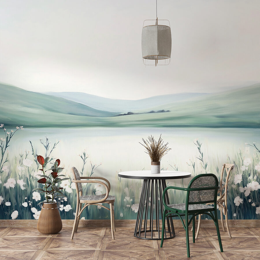Je ideálny pre chvíle, keď sa potrebujete nadýchnuť a uniknúť, a premení vaše steny na rozľahlý horizont. Pri pohľade naň sa dostaví určitý pokoj – akoby ste takmer počuli šumenie poľných kvetov vo vánku. Či už ide o útulný čitateľský kútik alebo svieže útočisko v spálni, táto nástenná maľba navodzuje pokojnú atmosféru, ktorej je ťažké odolať. Pridajte šálku čaju a dobrú knihu a máte svoju vlastnú malú svätyňu!