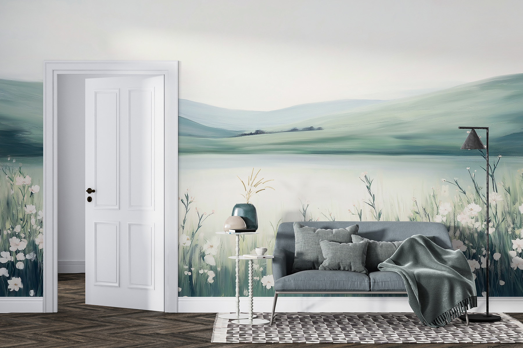 Je ideálny pre chvíle, keď sa potrebujete nadýchnuť a uniknúť, a premení vaše steny na rozľahlý horizont. Pri pohľade naň sa dostaví určitý pokoj – akoby ste takmer počuli šumenie poľných kvetov vo vánku. Či už ide o útulný čitateľský kútik alebo svieže útočisko v spálni, táto nástenná maľba navodzuje pokojnú atmosféru, ktorej je ťažké odolať. Pridajte šálku čaju a dobrú knihu a máte svoju vlastnú malú svätyňu!