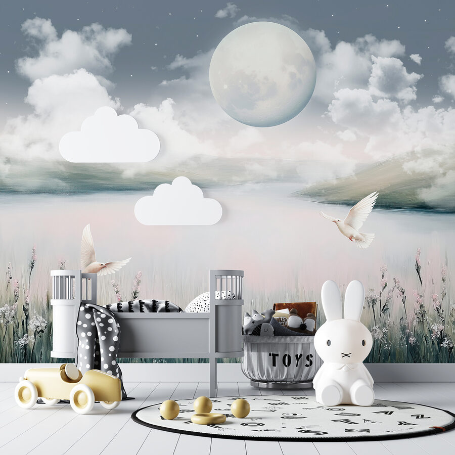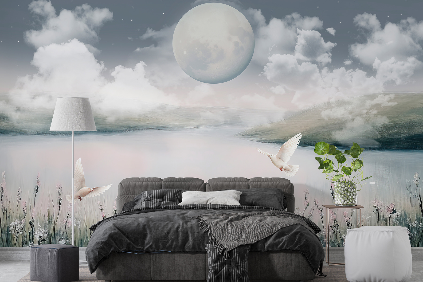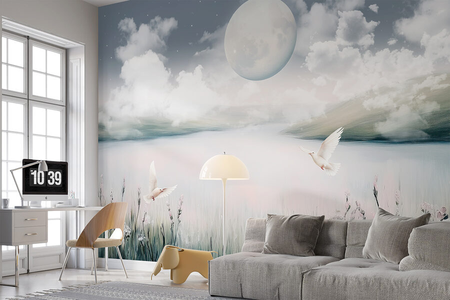 Predstavte si, že relaxujete na pohovke, v ruke držíte šálku čaju a máte pocit, že sa vznášate v tejto pokojnej krajine. Rána sú pokojné, večery úplne čarovné. Je ideálna pre každého, kto miluje prírodu a chce mať nádych rozmarnosti. Bonus? Pastelové kvety a vtáčiky dodávajú ten správny šarm bez toho, aby boli príliš prehnané. Určite sa o ňom bude rozprávať pri najbližšej rodinnej večeri! 🌙✨