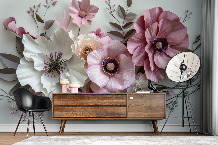 S touto pútavou fototapetou s papierovými kvetmi premeníte každú nudnú stenu na rozkvitnutú krajinu. Predstavte si, že vojdete do miestnosti, kde živé kvety pozývajú k úsmevu, akoby vás vítali doma. Tieto 3D kvety dodávajú hravý nádych, vďaka čomu sa stanú dokonalým spúšťačom konverzácie pri útulných stretnutiach alebo len pri pokojnom popoludní s knihou. Jemné farby a zložité detaily vytvárajú sviežu atmosféru, ktorá pôsobí ako nekonečná jar. Kto potrebuje záhradu, keď môžete mať túto krásu priamo vo svojom obytnom priestore? Je to ako príroda, ale bez potreby zalievania!