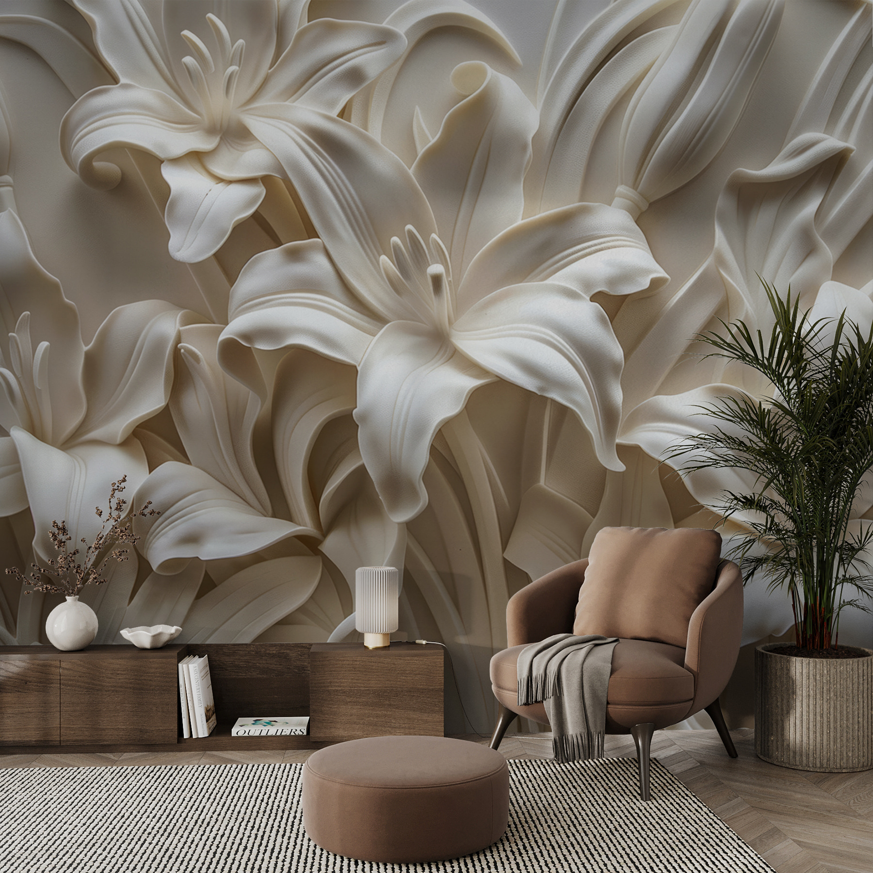 Predstavte si, že vojdete do miestnosti a privíta vás záplava elegantných krémových ľalií, ktoré akoby jemne vyrastali zo steny – hovoríme o wow faktore! “Fototapeta na stenu w01433” prináša nádych elegantnej sofistikovanosti vďaka svojmu 3D kvetinovému dizajnu. Nie je to len ďalšia potlač na stenu; dodáva každému priestoru textúru, hĺbku a pokojnú atmosféru. Ideálna pre niekoho, kto je unavený z plochých, nudných stien a túži po extra kúsku vkusu.