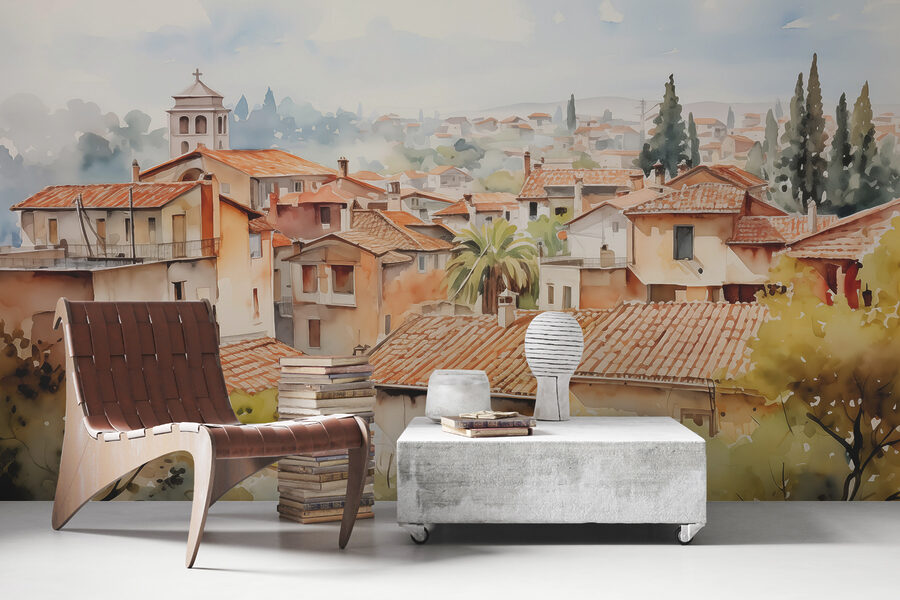 Predstavte si, že sa každé ráno prebúdzate s očarujúcou jednoduchosťou slnkom zaliatych terakotových striech a sviežej zelene… priamo vo svojej obývačke. “Nástenná maľba w01440” je ako pohľadnica z vašej obľúbenej stredomorskej dovolenky – ideálna na dodanie kvapky tepla a nostalgie. Táto nástenná maľba prináša prírodu do interiéru a zútulní a spríjemní každú miestnosť. Akvarelový efekt je jednoducho snový a dodáva tie ľahké, umelecké vibrácie. Priatelia, ktorí sa u vás zastavia, budú mať okamžite pocit, že vstúpili do rozprávkovej dediny, ktorá je plná očarujúcej atmosféry starého sveta. Ideálne pre každého, kto miluje spojenie rustikálneho šarmu s nádychom elegancie!
