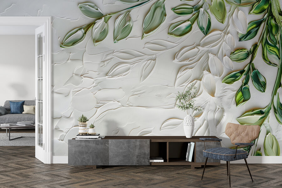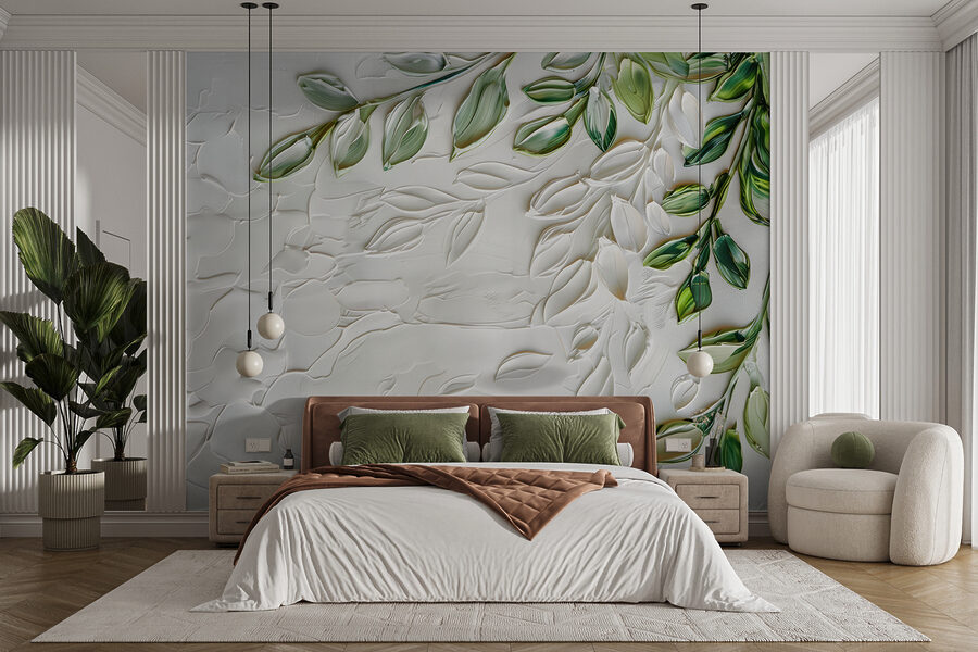 Ahoj, pozrite si túto úchvatnú nástennú maľbu (w01470)! Je to ako vstúpiť do pokojnej záhrady zakaždým, keď vojdete do miestnosti. Na nástennej maľbe sú jemné zelené listy s takým skvelým 3D efektom – takmer máte pocit, že by ste sa ich mohli dotknúť. Ideálna pre každého, kto miluje dekorácie inšpirované prírodou s nádychom.