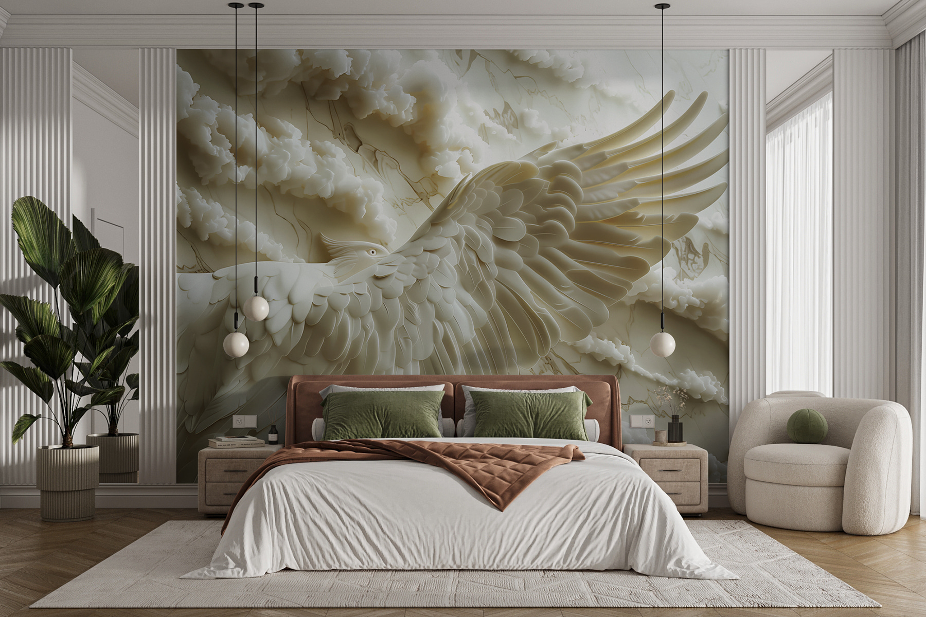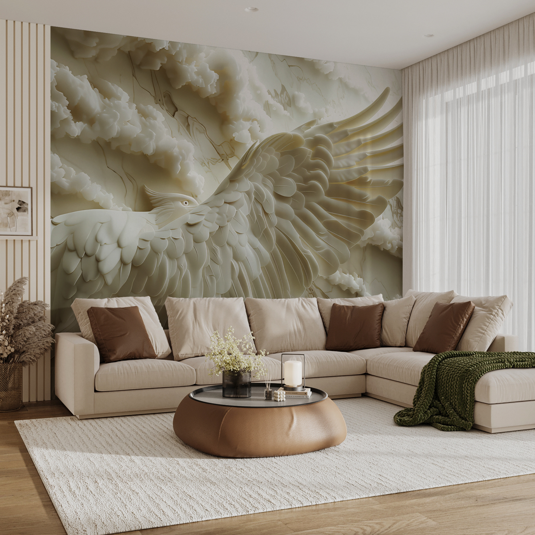 Premeňte akúkoľvek miestnosť na pokojné útočisko pomocou nástennej maľby “Biely vták s rozprestretými krídlami”. Tento úžasný kúsok zachytáva pôvab vtáka v strede letu, obklopeného jemnými, plynúcimi oblakmi. Len si predstavte, že vstúpite do svojho priestoru a okamžite pocítite pokoj, akoby ste sa pozerali na pokojnú oblohu.