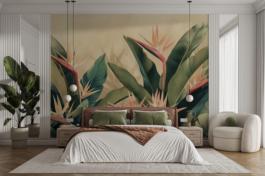 Predstavte si, že vojdete do svojej obývačky a okamžite sa budete cítiť, akoby ste sa ocitli v tropickom raji – nepotrebujete žiadne letenky! S nástennou maľbou w01484v1 sa tieto svieže zelené listy a žiarivé kvety rajských vtákov prakticky vynárajú zo steny. Nie je to len dekorácia, je to únik. Ideálna pre každého, kto sníva o úteku na ostrov, keď je po kolená v pracovných e-mailoch. Listy sú tak živo detailné, že by ste prisahali, že počujete šumenie vánku… a kto vie, možno dokonca dostanete chuť na piňa coladu. Je to ako preniesť kúsok krásy prírody do interiéru – bez chrobákov! Pozadie tejto nástennej maľby má hĺbku, ktorá vytvára takmer 3D efekt a dodáva vášmu priestoru osviežujúci príval života. Verte mi, vaše rána budú vďaka nej o niečo svetlejšie a večery uvoľnenejšie.