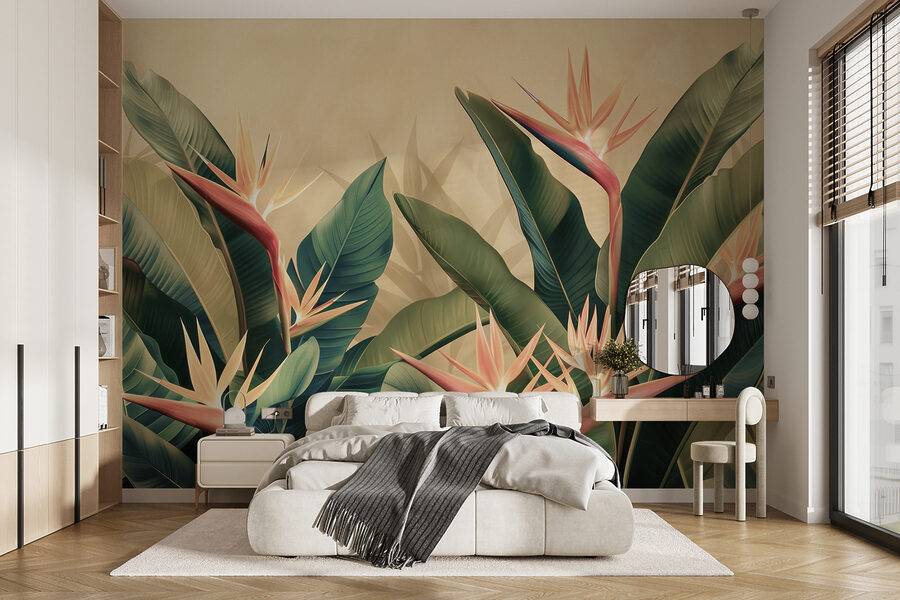 Predstavte si, že vojdete do svojej obývačky a okamžite sa budete cítiť, akoby ste sa ocitli v tropickom raji – nepotrebujete žiadne letenky! S nástennou maľbou w01484v1 sa tieto svieže zelené listy a žiarivé kvety rajských vtákov prakticky vynárajú zo steny. Nie je to len dekorácia, je to únik. Ideálna pre každého, kto sníva o úteku na ostrov, keď je po kolená v pracovných e-mailoch. Listy sú tak živo detailné, že by ste prisahali, že počujete šumenie vánku… a kto vie, možno dokonca dostanete chuť na piňa coladu. Je to ako preniesť kúsok krásy prírody do interiéru – bez chrobákov! Pozadie tejto nástennej maľby má hĺbku, ktorá vytvára takmer 3D efekt a dodáva vášmu priestoru osviežujúci príval života. Verte mi, vaše rána budú vďaka nej o niečo svetlejšie a večery uvoľnenejšie.