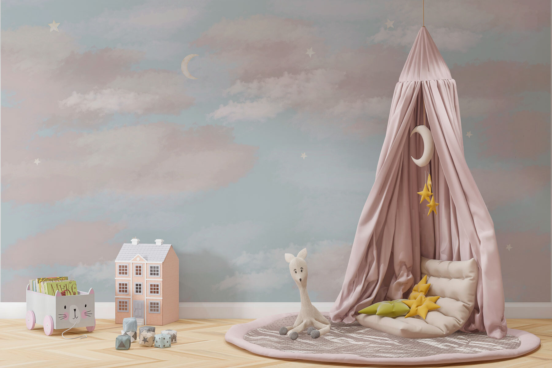 Predstavte si, že ležíte na gauči a pozeráte na dokonalú oblohu – bez chrobákov a nepredvídateľného počasia. Táto “Fototapeta: Modrá obloha s mrakmi a polmesiacom” vnesie do interiéru pokojné vibrácie a premení všednú stenu na plátno na snívanie. Nadýchané oblaky lenivo plávajú, polmesiac dodáva kvapku kúzla a jemný modrý odtieň? Ten prakticky našepkáva “relaxujte”. Ideálny do každého priestoru, ktorý túži po pokoji a šarme. Priatelia sa možno budú pýtať, či ste sa presťahovali von. Kľudne si doprajte svoje steny!