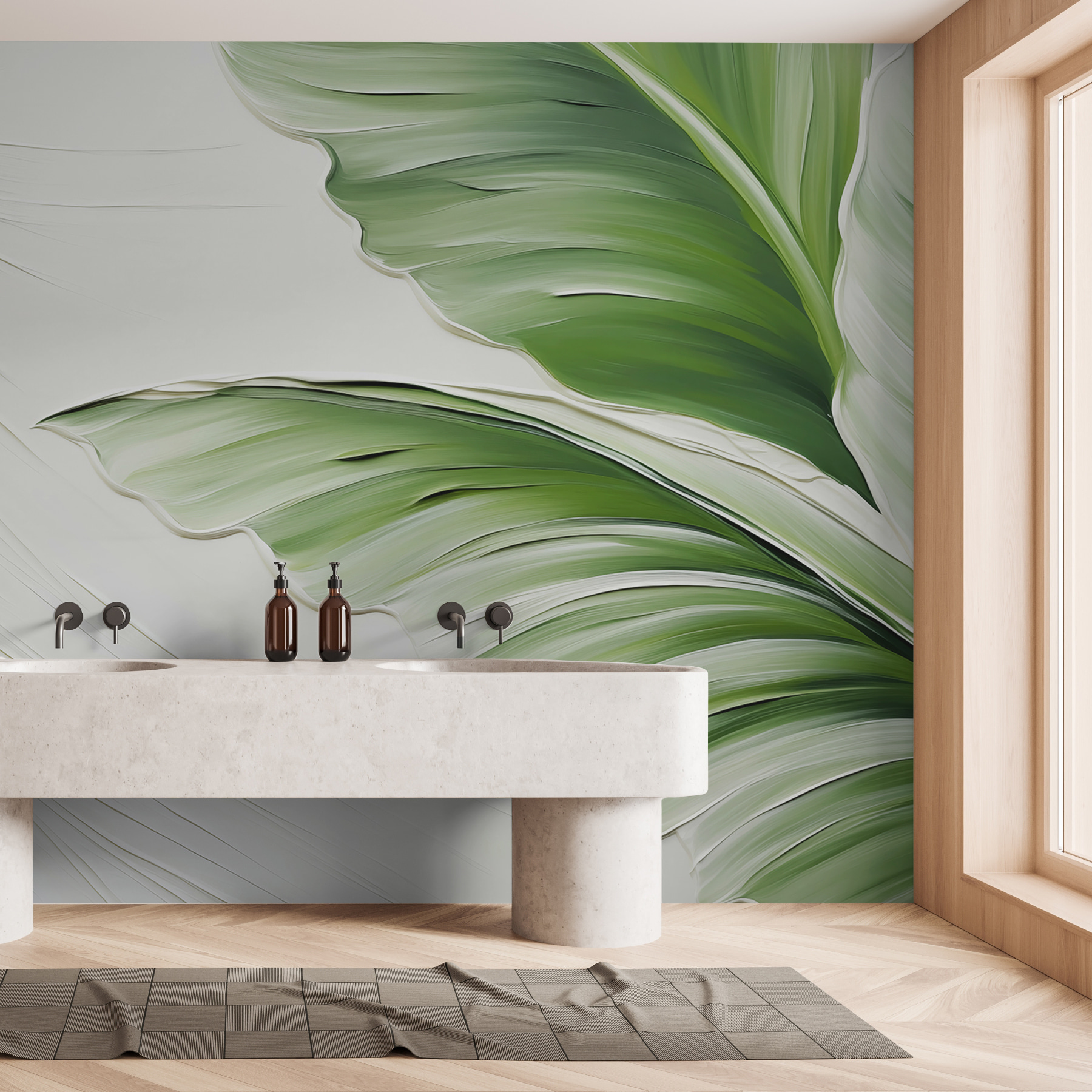 Predstavte si, že sa každé ráno zobudíte na jemný šepot prírody priamo vo svojej obývačke. Nástenná maľba “Sweeping Strokes of Green” spája eleganciu palmových listov so zasneným prívalom sviežosti. Je to, akoby sa listy rozhodli usporiadať na vašej stene tanečnú párty – ladnú, živú a plnú elánu. Ideálna pre tých, ktorí zbožňujú pobyt vonku, ale dávajú prednosť pohodlným dobrodružstvám v interiéri. Keď sa dovnútra vkradne slnečné svetlo, sledujte, ako sa odtiene zelenej farby prehlbujú a menia váš priestor na pokojné útočisko. Ideálne na snívanie, leňošenie alebo predstieranie, že ste na tropickej dovolenke.