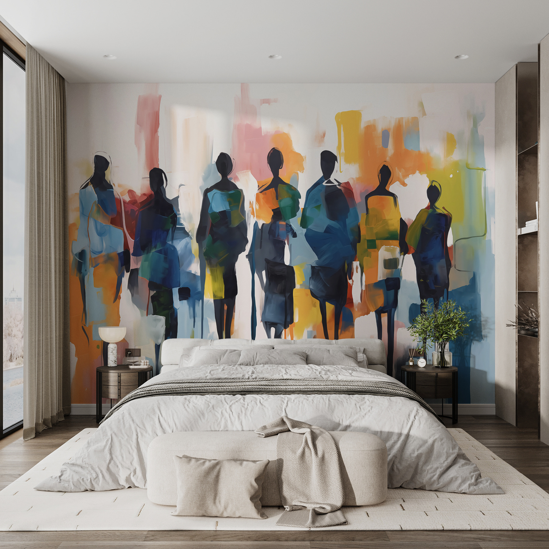 Napadlo vám niekedy, že vaša stena potrebuje nádych dobrodružstva? Vstúpte do nástennej maľby “Skupina kráčajúcich ľudí” – umeleckej zmesi farieb a tvarov, ktorá zachytáva životný zhon so snovým nádychom. Je to ako mať prehliadku priamo vo svojej obývačke! Predstavte si, že sedíte, popíjate kávu a cítite príval energie, keď sa tieto abstraktné postavy prechádzajú po vašej stene. Sú ako starí priatelia, zvláštne upokojujúce a zároveň plné príbehov. Ideálne pre tých, ktorí milujú zmes chaosu a pokoja. Navyše je to istý začiatok konverzácie – hostia sa môžu ocitnúť pri pomenovaní jednotlivých postáv!