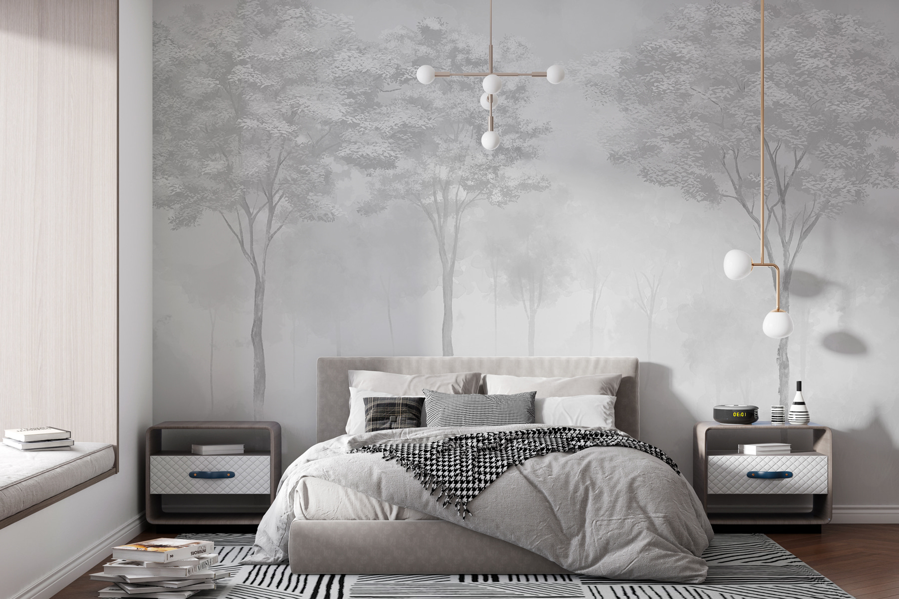 Predstavte si to: popíjate kávu počas hmlistého rána, ale ste v interiéri. To je čaro nástennej maľby “Skupina stromov v hmlistom lese”. Nie je to len dekorácia – je to úniková cesta do pokoja! Tieto stromy zahalené v hmle šepkajú kúzlo – ideálne pre každého, kto sa rád stráca v prírode bez toho, aby opustil svoju útulnú pohovku. Táto nástenná maľba vás zabalí do jemného objatia pokoja, či už sa nachádza vo vašej obývačke alebo pracovni. A možno vás inšpiruje aj k dennému snívaniu – kto by nemal rád malý poludňajší únik?
