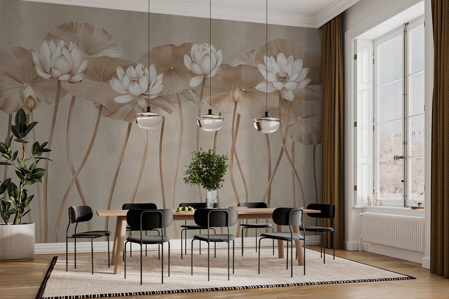 Premeňte obyčajnú stenu na pokojné útočisko s fototapetou Éterický lotos v jednofarebných odtieňoch. Predstavte si, že vstúpite do pokojnej záhrady, kde sa jemné lotosové kvety jemne kolíšu na svojich vysokých stonkách. Toto nástenné umenie prináša do interiéru nádych prírody a vytvára upokojujúcu atmosféru, ktorá šepká: “Nadýchnite sa, ste doma.” Perfektne sa hodí do každého priestoru, ktorý potrebuje kúsok šarmu, môže vyvolať rozhovory alebo jednoducho poskytnúť pokojné pozadie pri popíjaní rannej kávy. Je to ako mať mini oázu presne tam, kde ju potrebujete. Navyše, kto by nemal rád dobré chvíle s lotosovými kvetmi?