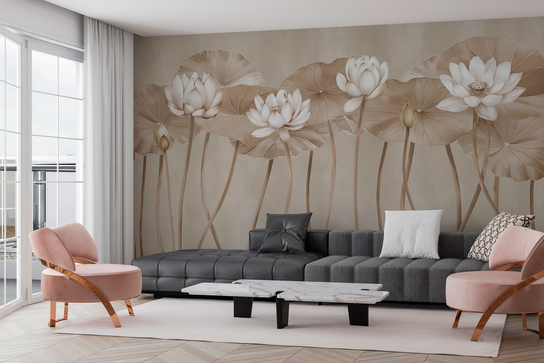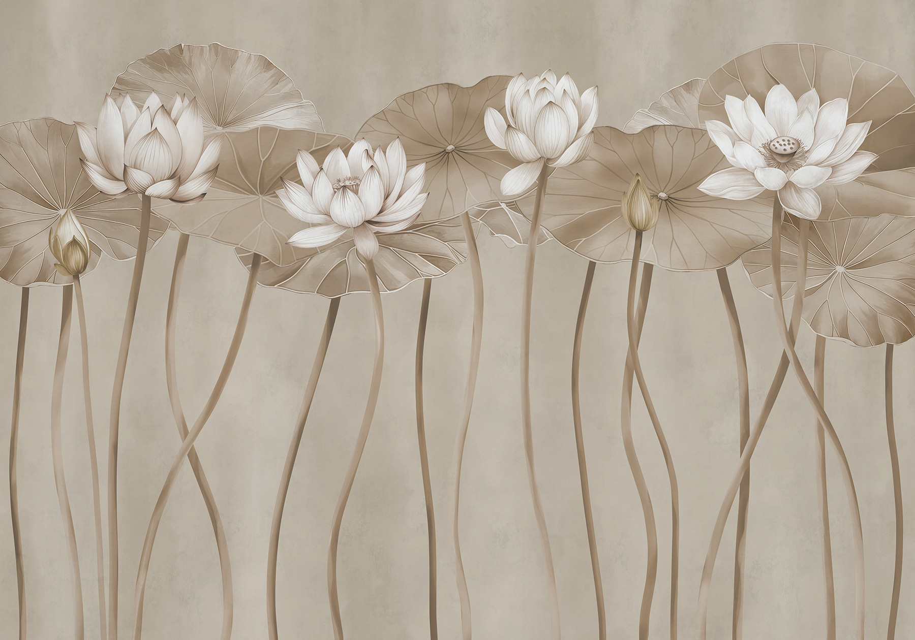 Premeňte obyčajnú stenu na pokojné útočisko s fototapetou Éterický lotos v jednofarebných odtieňoch. Predstavte si, že vstúpite do pokojnej záhrady, kde sa jemné lotosové kvety jemne kolíšu na svojich vysokých stonkách. Toto nástenné umenie prináša do interiéru nádych prírody a vytvára upokojujúcu atmosféru, ktorá šepká: “Nadýchnite sa, ste doma.” Perfektne sa hodí do každého priestoru, ktorý potrebuje kúsok šarmu, môže vyvolať rozhovory alebo jednoducho poskytnúť pokojné pozadie pri popíjaní rannej kávy. Je to ako mať mini oázu presne tam, kde ju potrebujete. Navyše, kto by nemal rád dobré chvíle s lotosovými kvetmi?