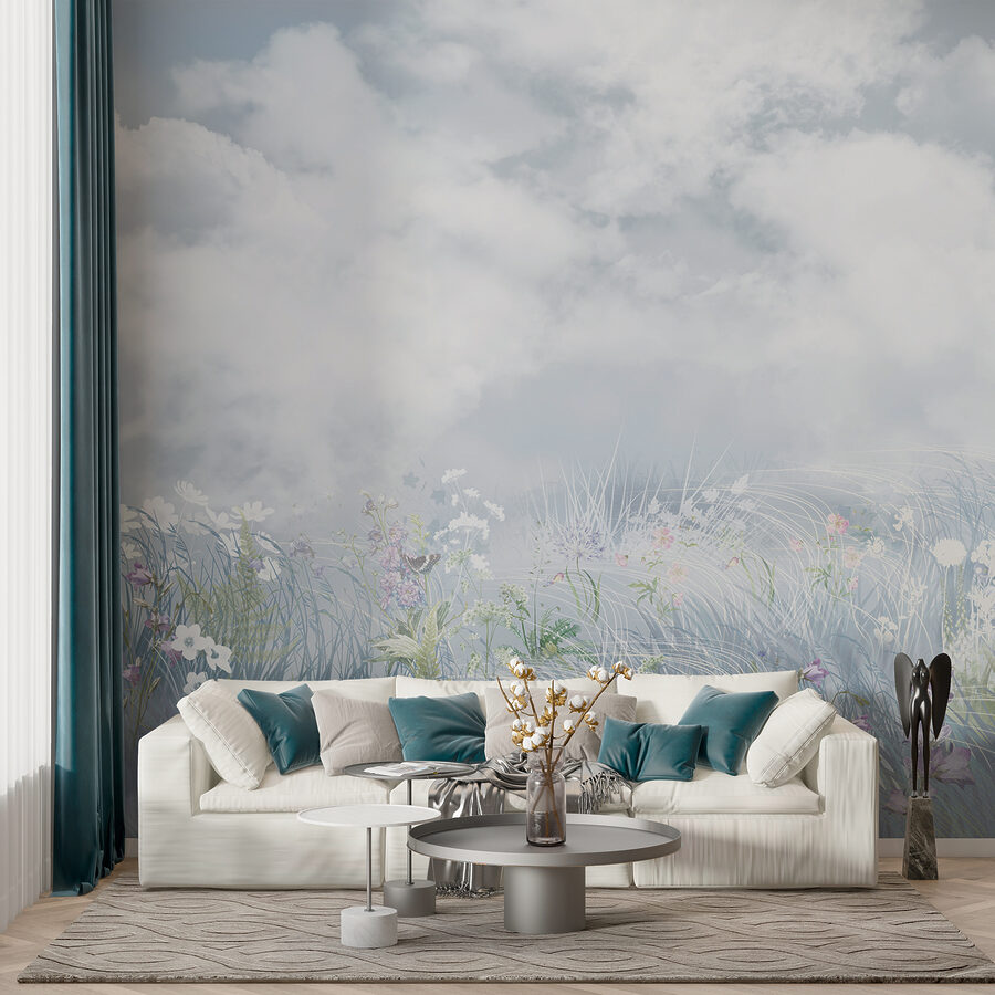 Predstavte si, že sa každý deň prebúdzate do kvetinového poľa – bez toho, aby ste opustili svoju útulnú posteľ. Táto nástenná maľba má také nadýchané oblaky, že sa prakticky odlepujú od steny, a divoké kvety, ktoré akoby vám rozkvitali pred očami. Je to ako akvarelový sen na vašej stene. Ideálna pre tých, ktorí si chcú zdriemnuť na lúke (bez mravcov). Má ten čarovný spôsob, ako otvoriť miestnosť, navodiť pocit pokoja a bezstarostnosti. Dokonalý únik. S čajom v ruke možno zabudnete, že ste doma. Blaženosť, však?