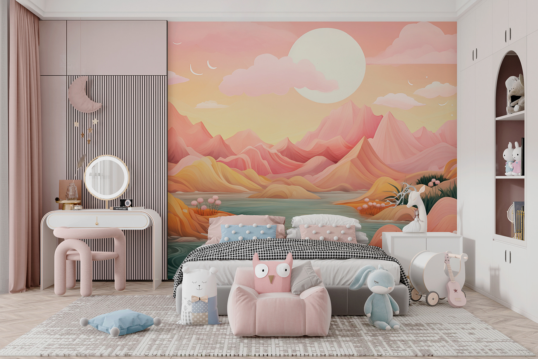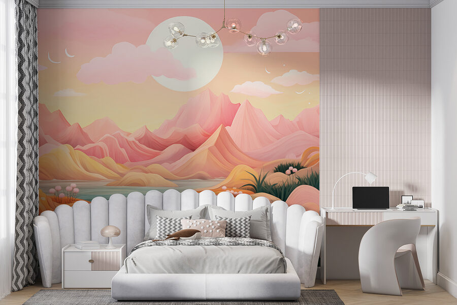 Premeňte svoj priestor pomocou tejto očarujúcej nástennej maľby “Rieka tečúca údolím”. Predstavte si, že vstúpite do svojej izby a budete mať pocit, že ste sa preniesli do pokojného údolia, kde pokojne plynú jemné vlny vody a krajinu lemujú mäkké hory. Akvarelový štýl dodáva zasnenú atmosféru, ktorá je ideálna na oživenie útulného kúta alebo dodanie živého nádychu kuchyni či obývačke. Je to ako mať mini útek priamo u vás doma. Navyše tie pastelové odtiene? Tie si priam pýtajú, aby ich doplnili vaše obľúbené rastliny alebo umelecké diela. Či už ide o pokojnú rannú kávu alebo uvoľnený večer s priateľmi, táto nástenná maľba vytvorí dokonalé pozadie. Kto by nechcel mať v interiéri kúsok prírody?