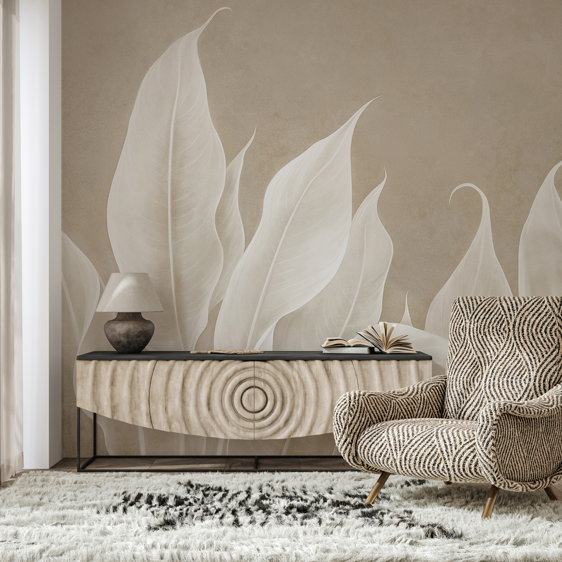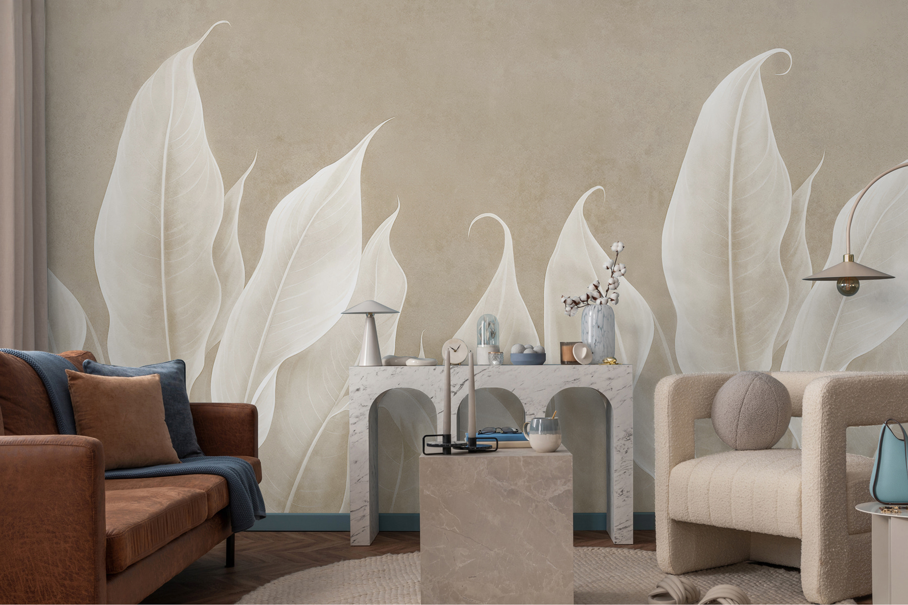 Premeňte akúkoľvek miestnosť na oázu pokoja s “Elegantným tancom krémových listov”. Táto nástenná maľba zahaľuje steny do jemného objatia mäkkých, splývavých listov a vytvára pokojné pozadie, ktoré nabáda k pokoju. Predstavte si, že popíjate čaj a zároveň sa ponoríte do pokojných vibrácií, ktoré prináša – je to ako mať sviežu záhradu priamo v interiéri. Krémové listy ladne tancujú po stene a dodávajú priestoru nádych rozmarnosti bez toho, aby ho zahltili. Ideálne pre tých, ktorí zbožňujú prírodu, ale nemusia mať zelený palec. Je inšpirovaný prírodou, ľahko sa naň pozerá a je príjemným spúšťačom konverzácie. Kto by to bol povedal, že dekorácia na stenu môže pôsobiť tak sviežo?