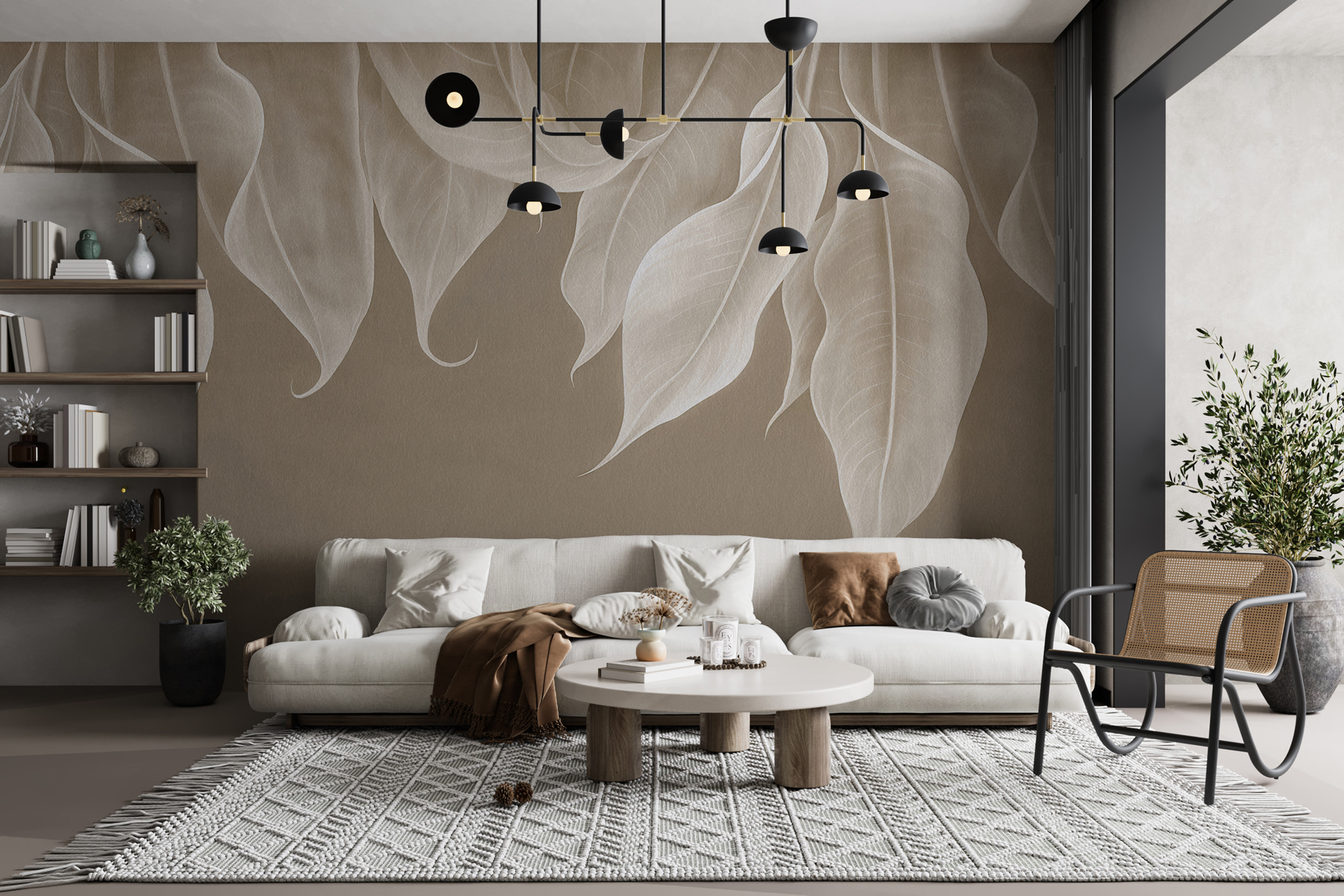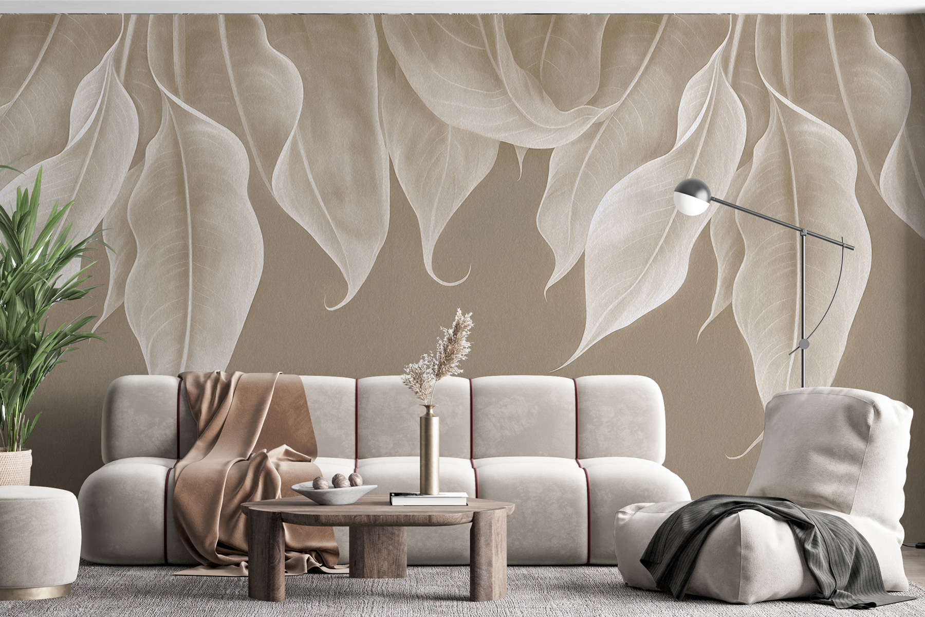 “Elegantné vlny prírodného dizajnu” zachytávajú jemný šepot listov, ktoré tancujú v harmónii. Predstavte si to: ležíte vo svojom obľúbenom kresle, v ruke držíte šálku čaju a tieto pokojné vlny lístia okolo vás vytvárajú upokojujúce objatie. Je to ako mať vlastnú tajnú záhradu – v interiéri! Jemné záhyby a vlny majú 3D efekt, ktorý vás možno prinúti natiahnuť ruku a dotknúť sa ich. Ideálne pre tých, ktorí túžia po troche prírodného pokoja bez chrobákov. Vážne, kto potrebuje výhľad, keď má vaša stena takúto atmosféru?