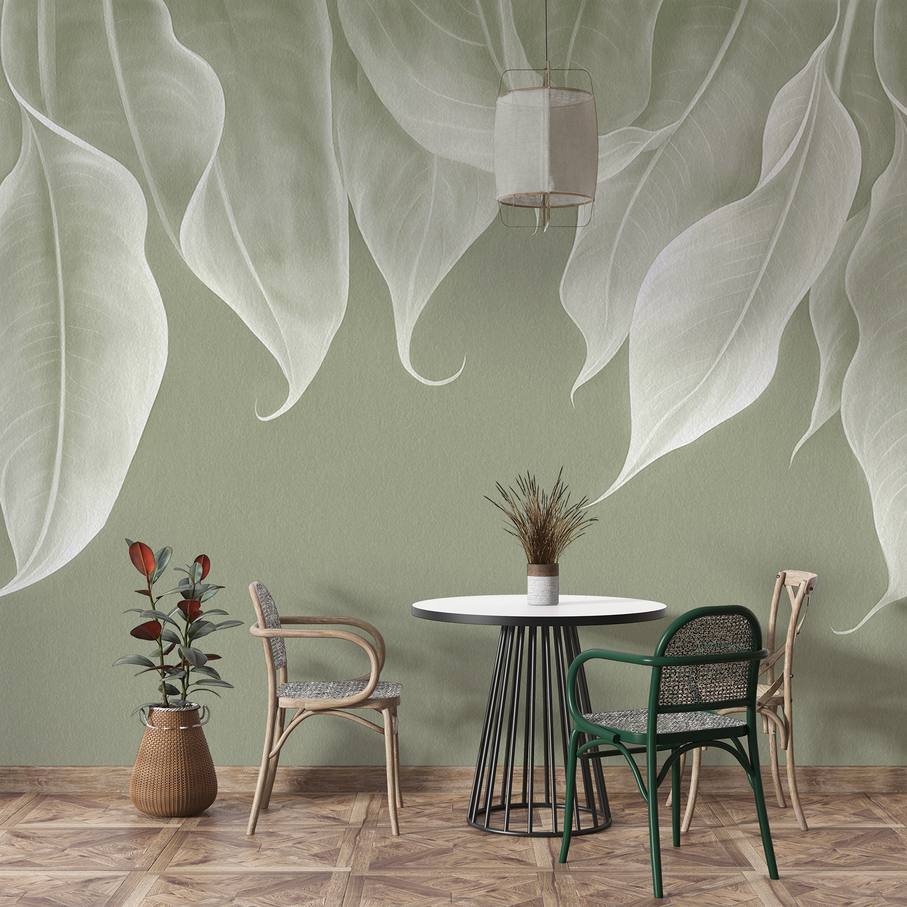 Mali ste niekedy pocit, že vaše steny sú príliš holé a túžite po troche osobitosti? Vstúpte do “Elegantných vĺn jednofarebného lístia”. Táto nástenná maľba nie je len kusom dekorácie – je to atmosféra. Predstavte si jemný vánok šumiaci v háji listov, kde každý z nich akoby tancoval len pre vás. Umiestnenie tejto nástennej maľby do vášho priestoru môže byť ako pozvanie na pokojnú prechádzku v parku priamo v interiéri. Okrem toho môže vyvolať zasnený povzdych – váš alebo vašich priateľov. Nebuďte šokovaní, keď sa pristihnete, že sa pri rannej káve lúčite stratení v jej elegantnom pôvabe. Ideálna pre každého, kto miluje prírodu s nádychom elegancie!