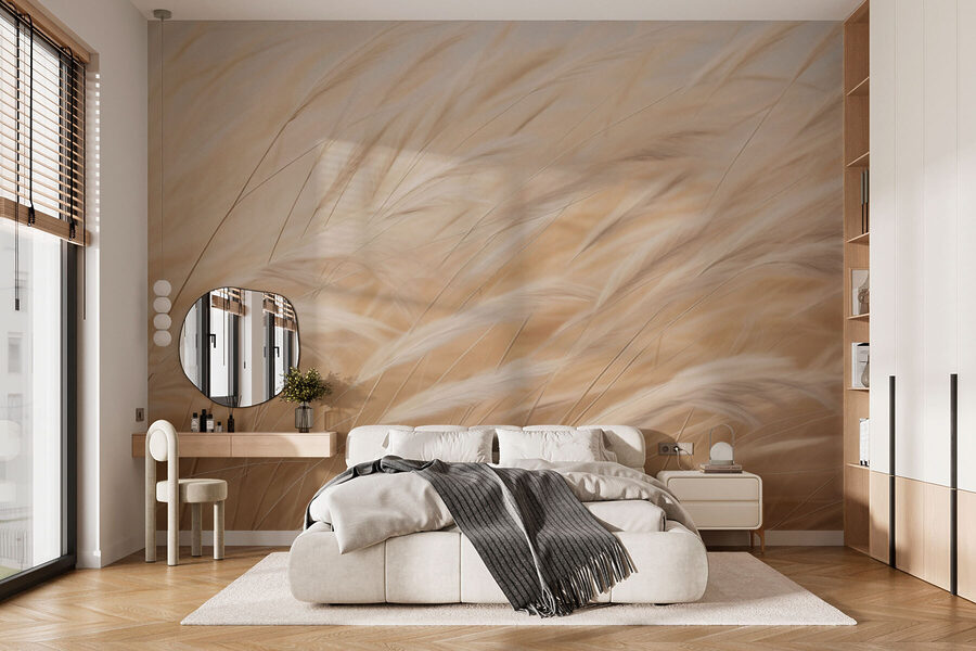 Premeňte svoj priestor s upokojujúcou atmosférou nástennej maľby “Bledé trávy sa ľahko kolíšu”. Predstavte si, že vstúpite na pokojnú lúku, kde jemný vánok roztancuje zlatisté trávy. Táto nástenná maľba zachytáva túto pokojnú scénu – ideálnu do obývačky, spálne alebo dokonca do útulného čitateľského kútika. Je to ako pozvanie prírody do vášho domova bez hmyzu a peľu. Len si predstavte, ako sa krútite s knihou, zatiaľ čo vás táto upokojujúca kulisa obklopuje a vytvára pokojný únik. Jemné odtiene sa bez námahy kombinujú s akýmkoľvek interiérom, čo z neho robí univerzálny kúsok, ktorý šepká eleganciu. Jediné, čo zostáva urobiť? Vezmite si šálku čaju a vychutnajte si výhľad!