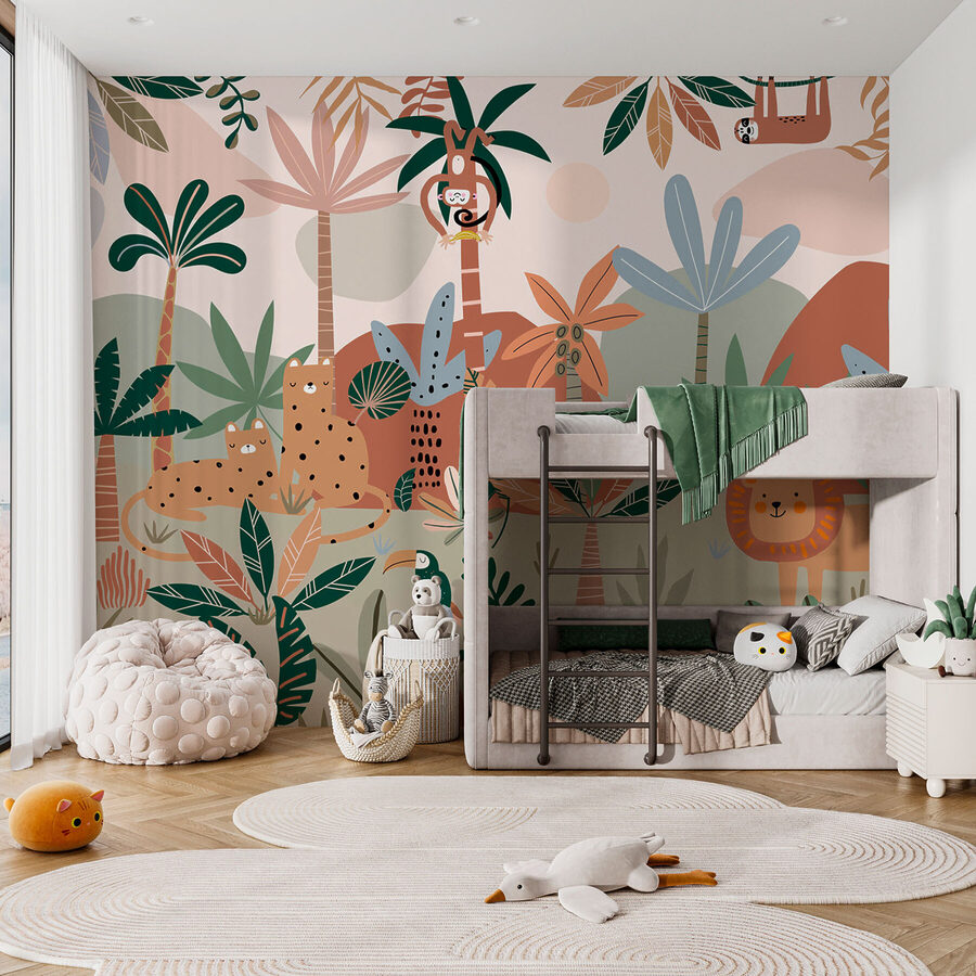 Vstúpte do džungle bez toho, aby ste museli opustiť svoj dom! Táto hravá fototapeta je ako mini safari dobrodružstvo vo vašej obývačke. Predstavte si veselé levy, rozkošné leňochody a drzé opice, ktoré vykúkajú cez hustý baldachýn žiarivých zelených a zemitých tónov. Má tú zábavnú, nepredvídateľnú atmosféru, ktorá vám vyčarí úsmev na tvári – ako keď nájdete svoj dávno stratený obľúbený sveter. Ideálny do detských izieb alebo, povedzme si úprimne, pre každého, kto má rád trochu rozmarnosti. Je to kúsok divočiny, ktorý rozžiari vašu každodennú pohodu.
