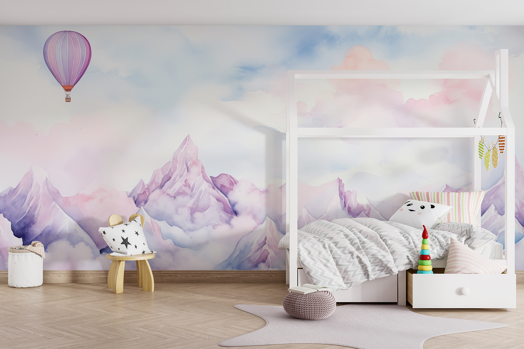 Predstavte si, že vstúpite do miestnosti a zrazu sa necháte unášať – plavíte sa nad hmlistými horami, nad hlavou sa vám jemne vznáša teplovzdušný balón. Farby, jemné ako šepot, vo vás vyvolávajú pocit, že žijete v snovom akvarelovom obraze. Je to ako mať vstupenku do pokoja priamo na stene! Ideálny pre každého, kto miluje nádych dobrodružstva bez toho, aby musel opustiť svoj gauč. Navyše vaša ranná káva bude s týmto výhľadom chutiť o niečo čarovnejšie. Ideálny pre tých, ktorí nevidia svet taký, aký je, ale aký by mohol byť.