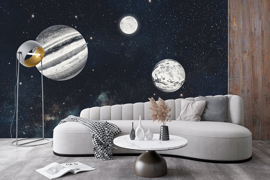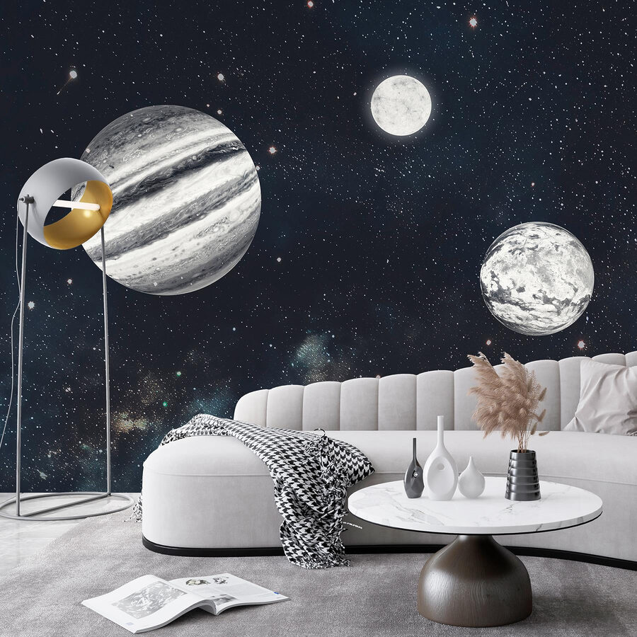 Snívali ste niekedy o tom, že sa necháte unášať spánkom medzi hviezdami? Vstúpte na nástennú maľbu “Planéty vo vesmíre s hviezdami”. Predstavte si, že sa zobudíte, prevrátite sa a stratíte sa vo vesmírnom tanci – priamo na stene. Ideálne pre nadšencov galaxií alebo pre každého, kto si niekedy želal nočný únik z hviezdnej oblohy. Je to ako mať malý vesmír vo vlastnom dome. Hostia si navyše budú myslieť, že ste sa tajne stali astronautom. Tak si tento vesmír vysaďte na stenu a nechajte svoju fantáziu obiehať – gravitácia nie je povinná!
