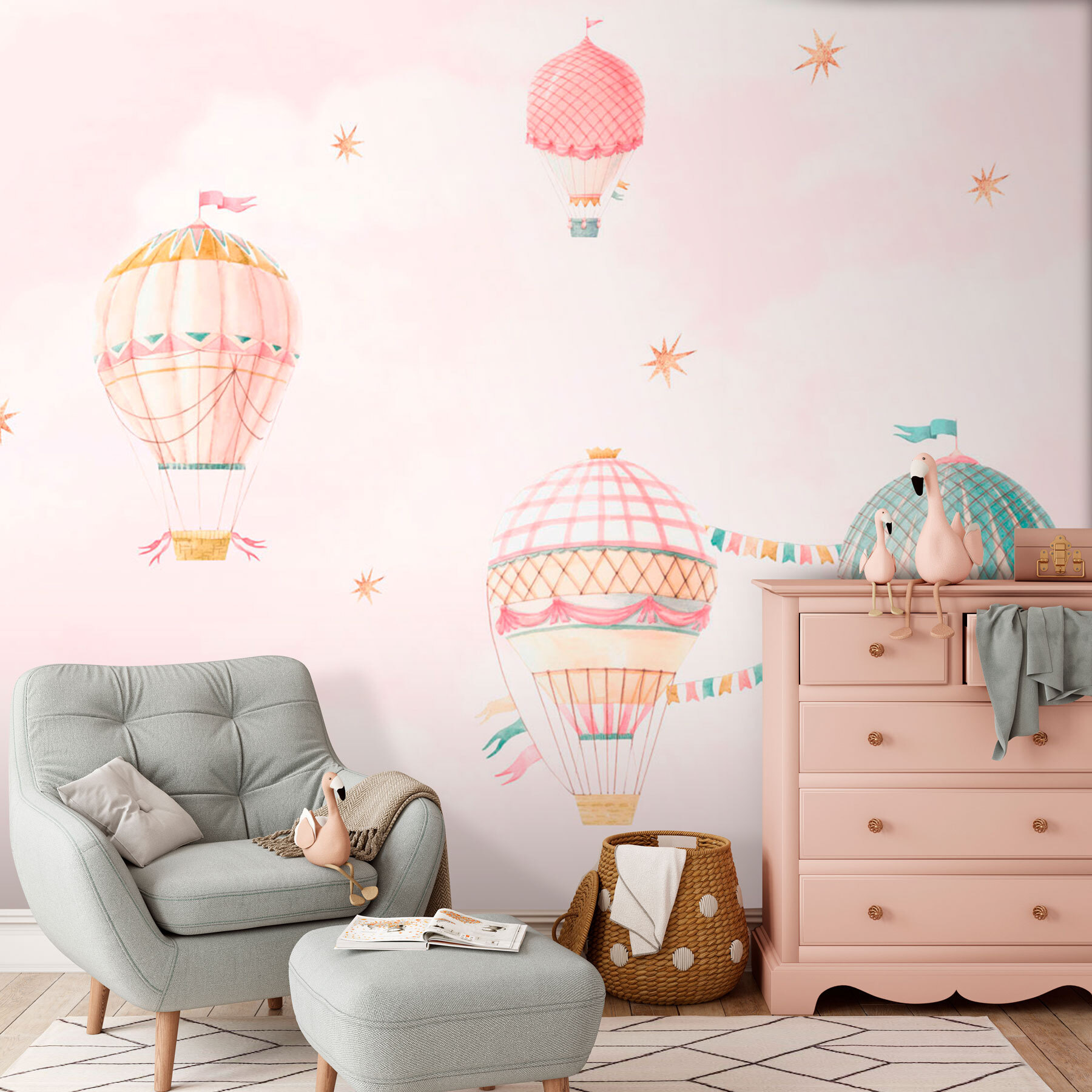 Predstavte si, ako sa vznášate na zasnenom dobrodružstve s touto nádhernou nástennou maľbou teplovzdušných balónov, ktoré lenivo plávajú po pastelovej oblohe. Je to ako vstúpiť do rozprávkovej knihy – kde každý pohľad nahor sľubuje nádych rozmarnosti a štipku putovania. Je ideálny na doplnenie izby vašej dcéry o kúzlo, ktoré ju prinúti snívať o oblohe plnej možností. Každý balón akoby šepkal príbehy o vzdialených krajinách a nekonečných obzoroch. Jemná pripomienka, že nebo nie je limit – je to len začiatok!