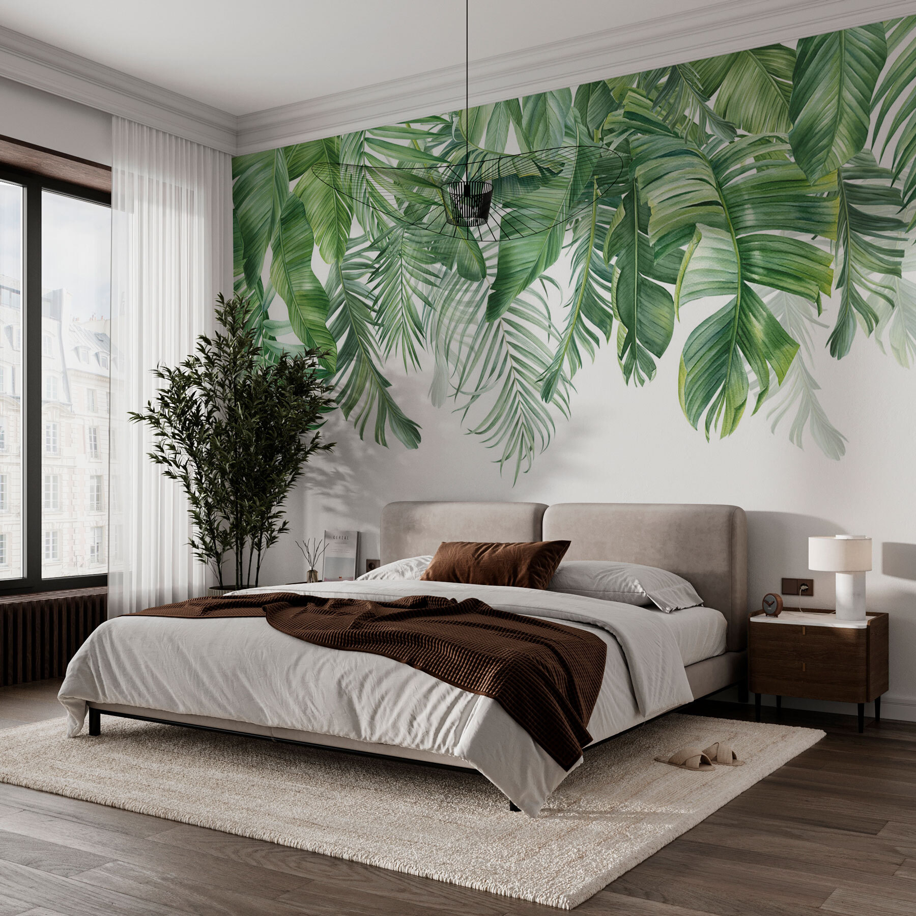 Predstavte si, že vojdete do miestnosti a okamžite sa budete cítiť ako uprostred tropického pralesa. Presne to dokáže nástenná maľba “Rad zelených listov” – prenesie vonkajší svet priamo do vášho obytného priestoru. Táto nástenná maľba je ako chladný vánok v horúcom dni, osviežujúci a upokojujúci. Svieže zelené listy dodávajú šmrnc živej prírode, ktorá je ideálna na rozbitie nudných bielych stien. Skvelý podnet na konverzáciu – priatelia sa vás možno opýtajú, či ste sa tajne nestali botanikom! Ideálne na oživenie bez potreby zalievania.