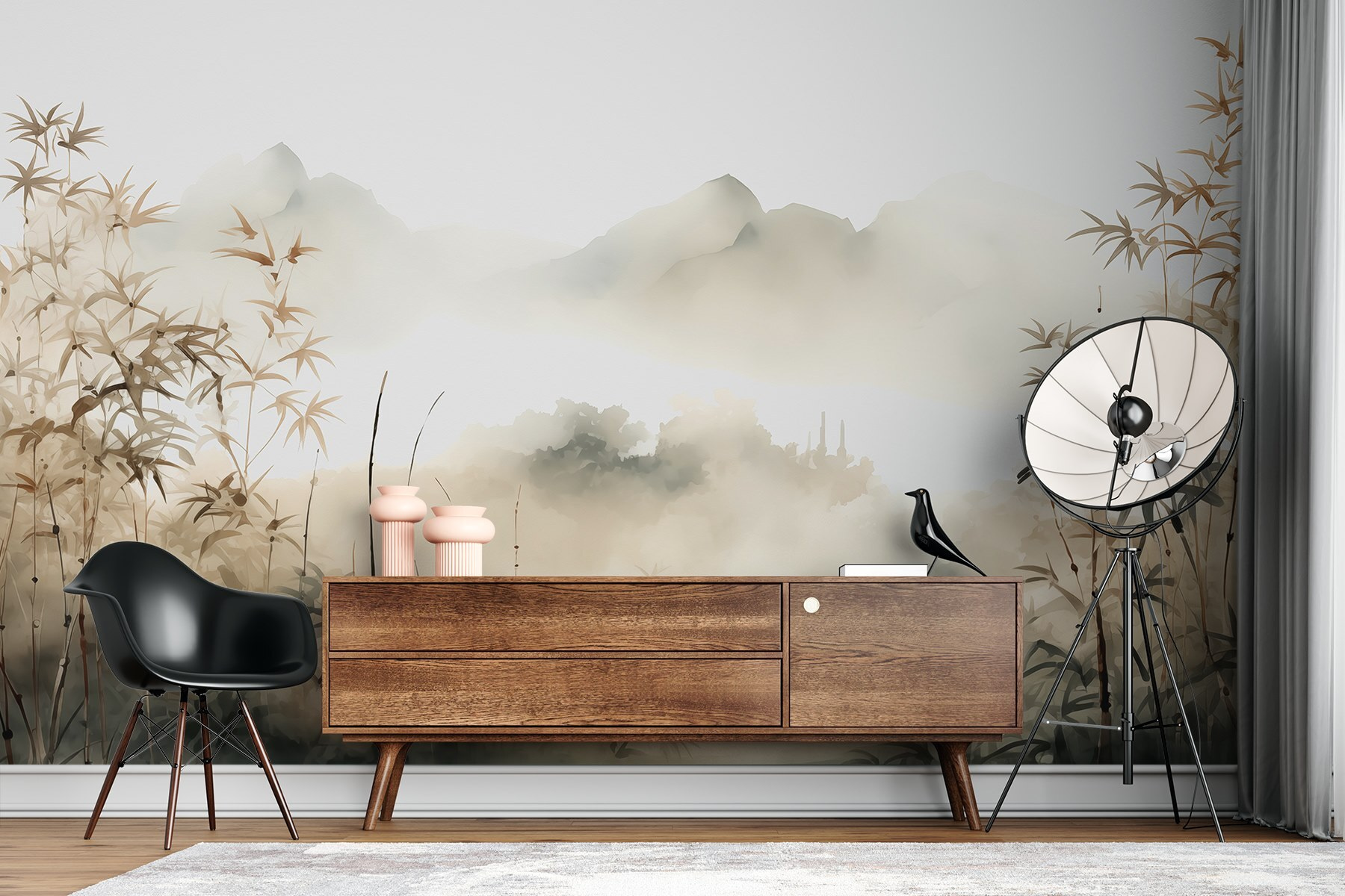 Predstavte si toto: úžasná nástenná maľba, ktorá vás unesie do pokojného, hmlistého snenia. Ideálne na prenesenie pocitu, že ste práve vstúpili do románu, priamo do vášho domova. Táto zasnená scéna rastlín zahalených v jemnej hmle navodzuje upokojujúci tón, ako keď sa prechádzate lesom, kde sa myšlienky vznášajú rovnako voľne ako ranná hmla. Akoby sa vaša stena zhlboka nadýchla a rozhodla sa rozprávať pokojný príbeh. Sladký únik – bez toho, aby ste si zbalili kufre. Skvelé pre snílkov aj milovníkov prírody!