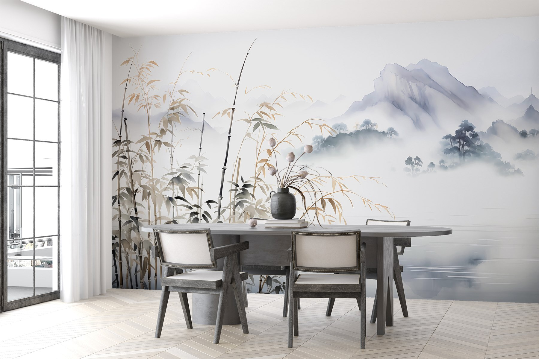Priali ste si niekedy uniknúť do pokojnej krajiny bez toho, aby ste museli opustiť svoj domov? Táto nástenná maľba prinesie túto snovú atmosféru priamo na vašu stenu! Predstavte si tie hmlisté hory a pokojné jazero, ktoré vás unášajú preč od každodenného chaosu. Ideálne pre relaxačný kútik, po ktorom túži každý. Je to ako malá dovolenka, ale batožina zostáva uložená. Navyše, kto by nemal rád trochu prírody v interiéri? Ideálne na chvíle, keď potrebujete pokoj alebo chcete rozprúdiť tvorivé myšlienky. Smelo do toho, stratte sa v pokojnej kráse a nechajte sa unášať svojou fantáziou!