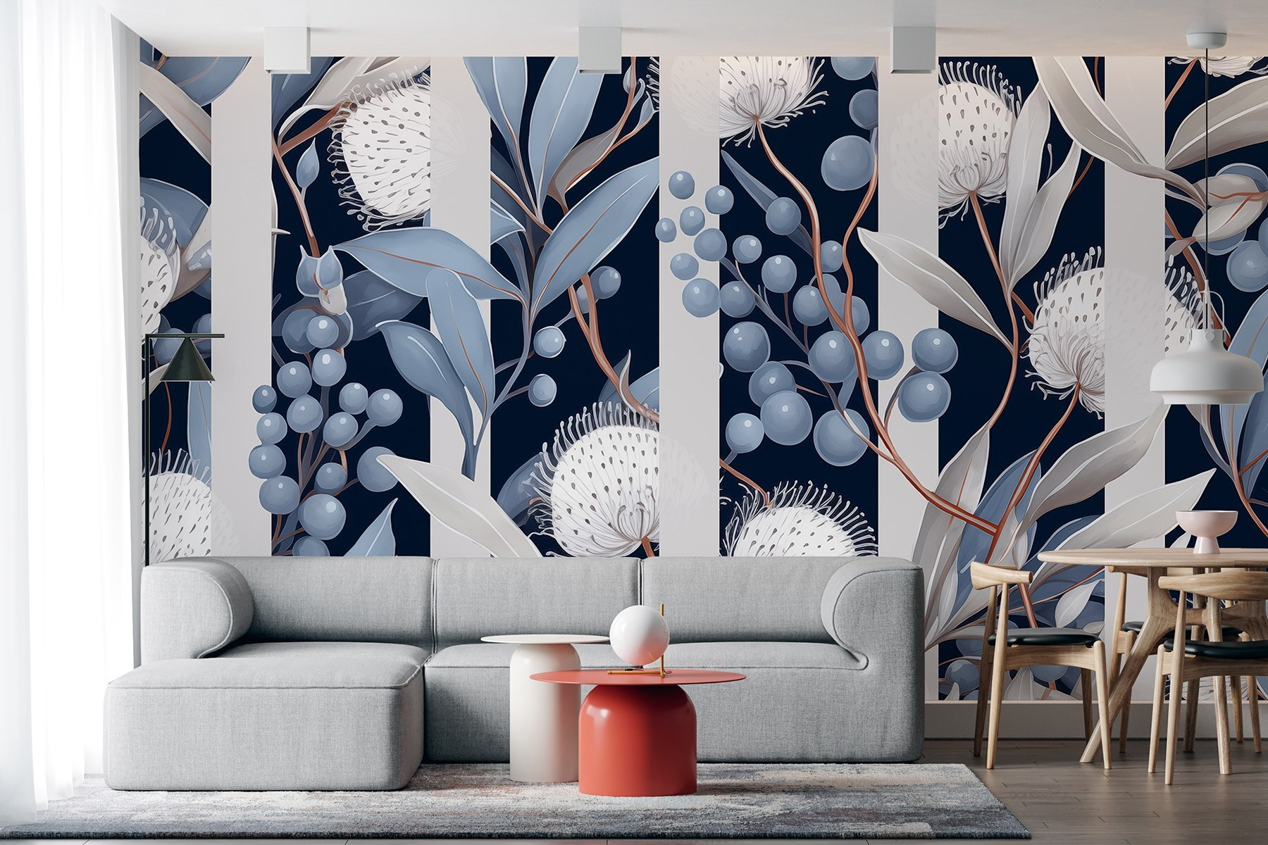 Tu je nástenná maľba, vďaka ktorej vám budú steny každé ráno šepkať sladké tóny. Predstavte si, že sa zobudíte na tento rozkošný tanec modrých a bielych kvetov ako na tajnú záhradu ukrytú vo vašej izbe. Listy sa krútia v jemných slučkách, zatiaľ čo kvety – ach, tie kvety – sa krútia, akoby boli zachytené v bezstarostnom balete. Hoďte si ho do obývačky a sledujte, ako plynú rozhovory inšpirované umením samotnej prírody. Je to ako mať kúsok pokojnej, nadpozemskej krásy priamo doma. Nie je to očarujúce?