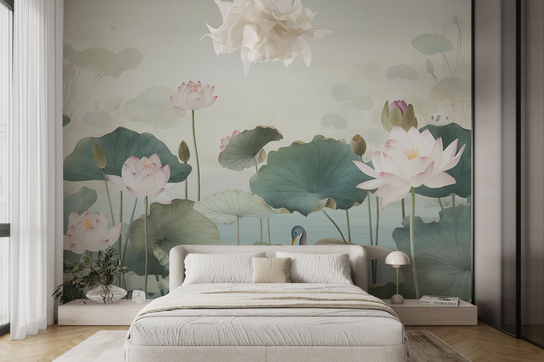 Premeňte akýkoľvek priestor na oázu pokoja s touto očarujúcou nástennou maľbou kačice, ktorá ladne pádluje cez pokojné jazierko zdobené krásnymi lotosovými kvetmi. Jemný akvarelový efekt prináša zasnenú atmosféru, ktorá je ideálna pre útulný čitateľský kútik alebo pokojné útočisko v spálni. Predstavte si, ako sa pri popíjaní čaju alebo snívaní o vzdialených miestach zahaľujete do upokojujúcich farieb. Je to ako preniesť šepot prírody do interiéru bez všetkých otravných chrobákov! Táto nástenná maľba nie je len dekoráciou, je to malý kúsok pokoja, ktorý vyvolá jemný povzdych zakaždým, keď okolo neho prejdete.