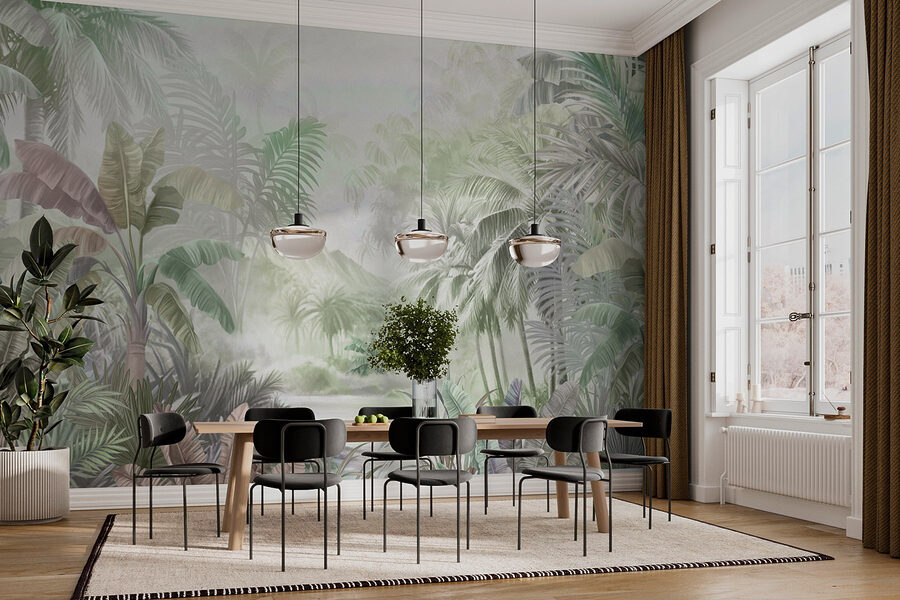 Premeňte svoj priestor na tropický raj s touto očarujúcou nástennou maľbou lesa. Predstavte si, že vojdete do svojej izby a okamžite pocítite pokojné vibrácie pokojnej džungle – svieža zeleň šepká príbehy plné dobrodružstva a pokoja. Jemné odtiene a delikátne detaily jej dodávajú snovú atmosféru, ktorá je ideálna pre chvíle, keď chcete uniknúť každodennému zhonu. Či už popíjate kávu alebo ste stratení v dobrej knihe, táto nástenná maľba nabáda k pocitu úžasu. Je to ako mať prírodu priamo na stene, bez komárov. Prineste si domov tento kúsok a sledujte, ako váš priestor rozkvitne životom!