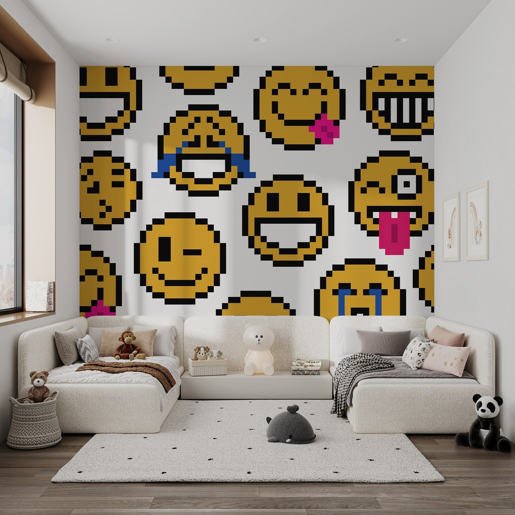 Vneste do svojho priestoru kvapku radosti s touto nepredvídateľnou nástennou maľbou s rozkošnou skupinou žltých smajlíkov. Predstavte si to: vstúpite do miestnosti a okamžite sa budete cítiť ľahšie, obklopení veselými výrazmi, ktoré vám jednoducho nemôžu pomôcť a vyčarujú úsmev. Je to ako párty pre vaše steny, kde má každá tvár svoju vlastnú malú atmosféru. Či už je to hlúpe žmurkanie alebo široký úsmev, tieto postavy rozprávajú svoje vlastné príbehy. Ideálne do kancelárie, detskej izby alebo na akékoľvek miesto, ktoré potrebuje dobrú náladu, určite vyčarí úsmev – aj v tých najťažších dňoch. Nech sa zábava začne!